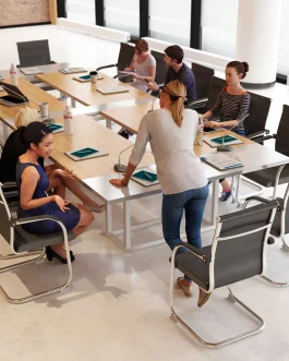 Stoły konferencyjne są projektowane z myślą o różnorodnych zastosowaniach – od małych spotkań biznesowych po duże konferencje. Oferujemy stoły o różnych kształtach: prostokątne, okrągłe, kwadratowe czy modułowe, które pozwalają na elastyczne aranżowanie przestrzeni. Dzięki bogatej ofercie, każdy klient może wybrać stół, który najlepiej odpowiada jego wymaganiom pod względem funkcjonalności i designu.