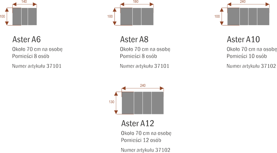 Liczba osób zależy od modelu i wymiarów blatu. W opisie każdego stołu podajemy rekomendowaną liczbę osób, dla której stół został zaprojektowany, zapewniając optymalny komfort i przestrzeń do pracy. Przyjmuje się około 60 cm na osobę.