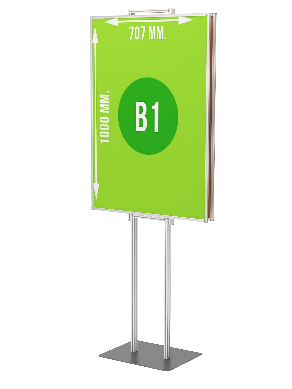 Dwustronny stojak na plakat 2xB1 z anodowanego aluminium.