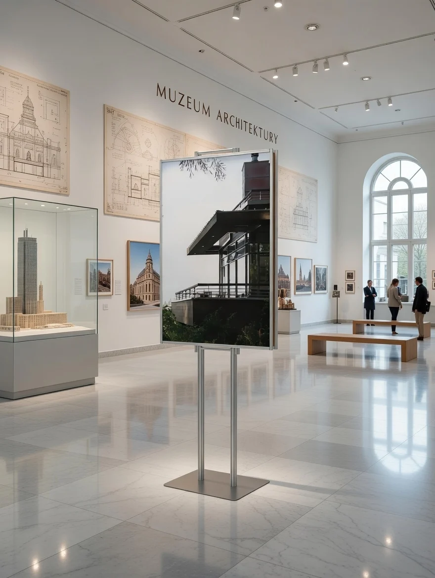 To stabilne uniwersalne rozwiązanie , jest inteligentnie zaprojektowana aby dzięki modułowej konstrukcji, przypinać i odpinać ramki plakatowe różnego rodzaju do stelaża.