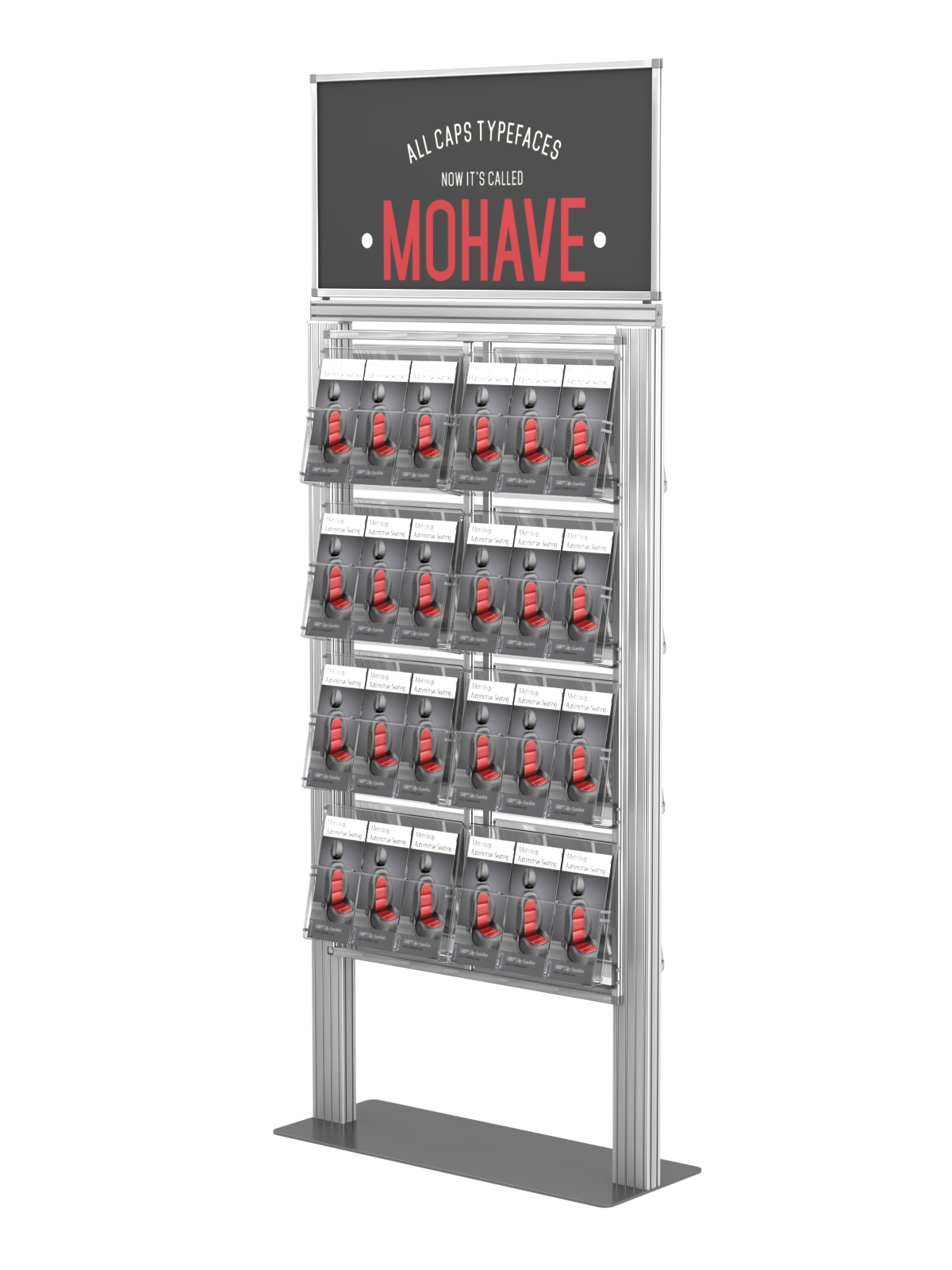 Dwustronny stojak na ulotki A4 A5 i DL + plakat – 16 kieszeni A4 193cm art.025