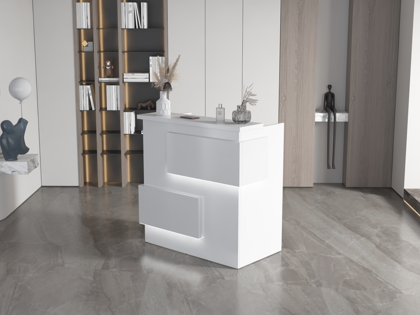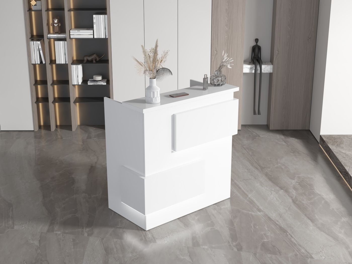 - Praktyczność: Ergonomiczna konstrukcja ułatwia pracę recepcjonisty, umożliwiając wygodną obsługę klientów, przechowywanie dokumentów i obsługę sprzętu biurowego.