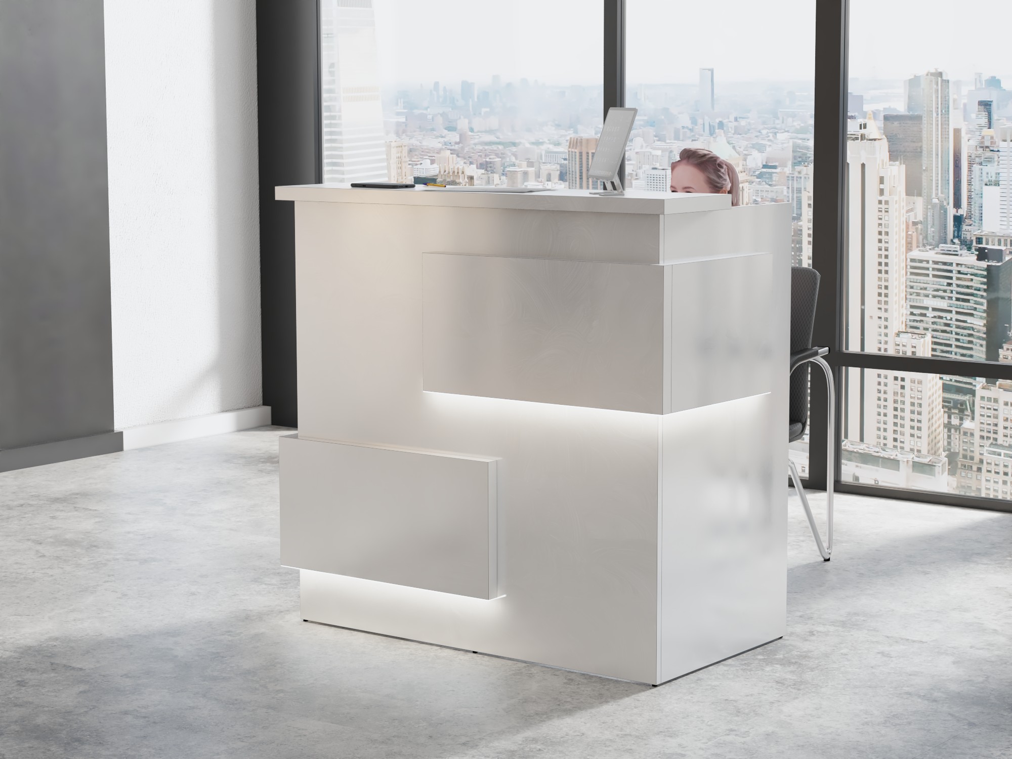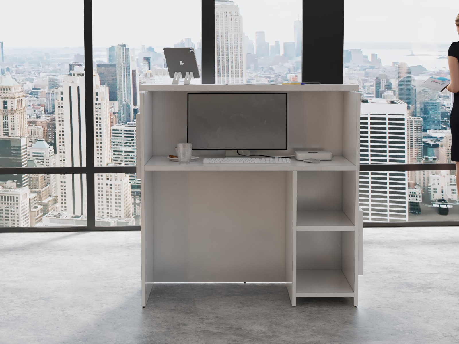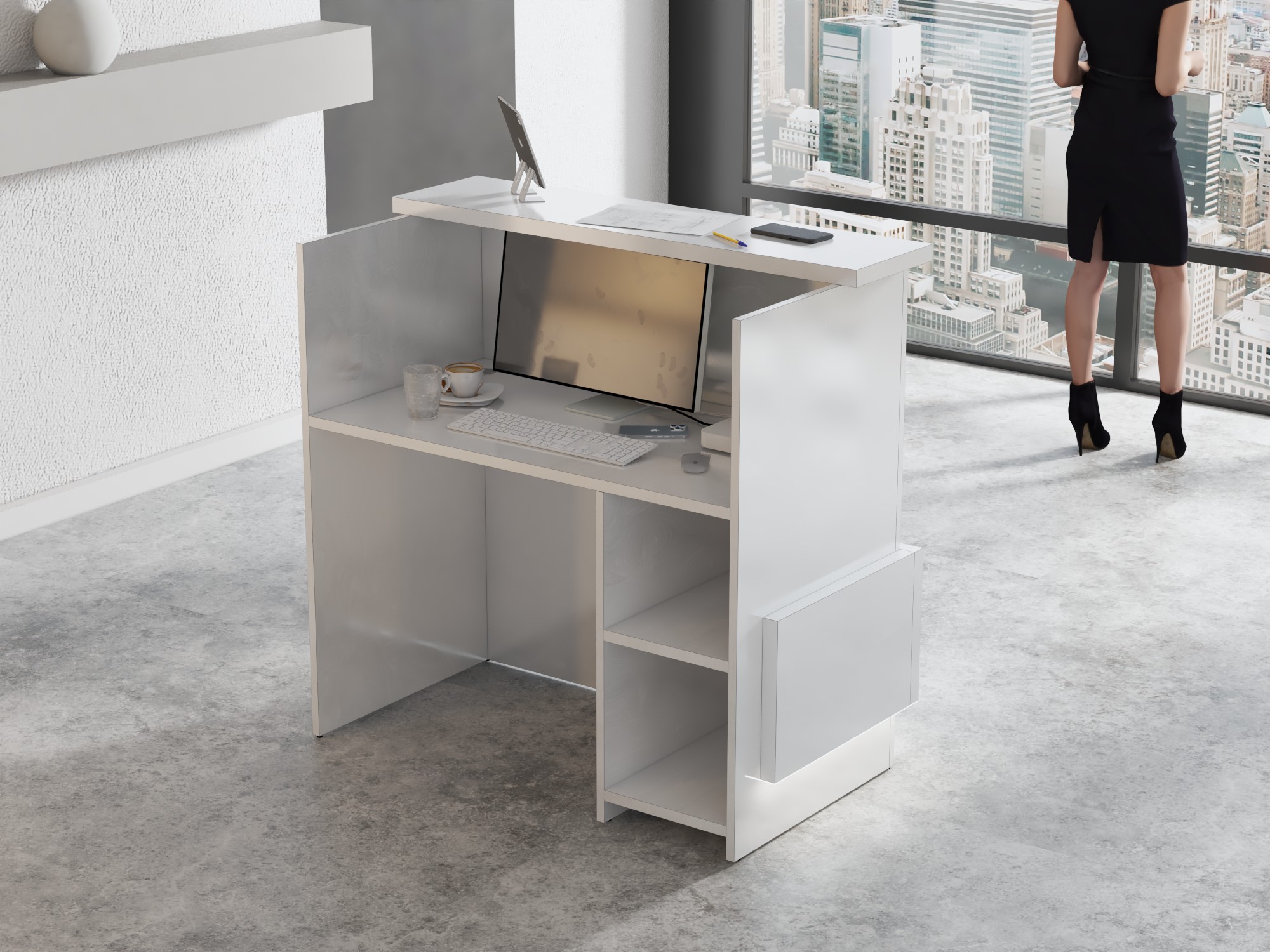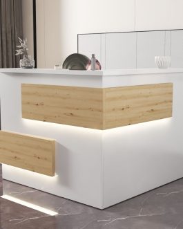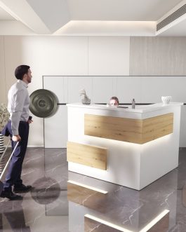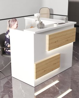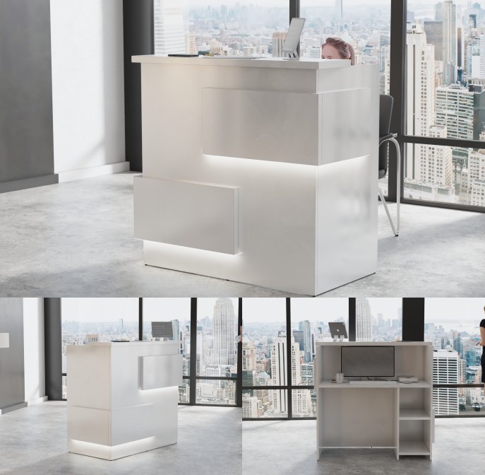- Praktyczność: Ergonomiczna konstrukcja ułatwia pracę recepcjonisty, umożliwiając wygodną obsługę klientów, przechowywanie dokumentów i obsługę sprzętu biurowego.