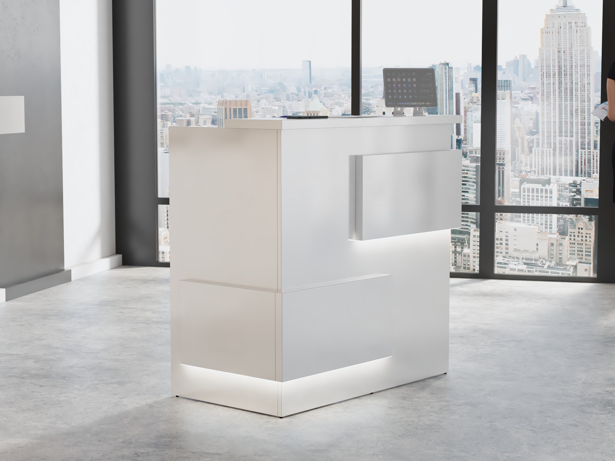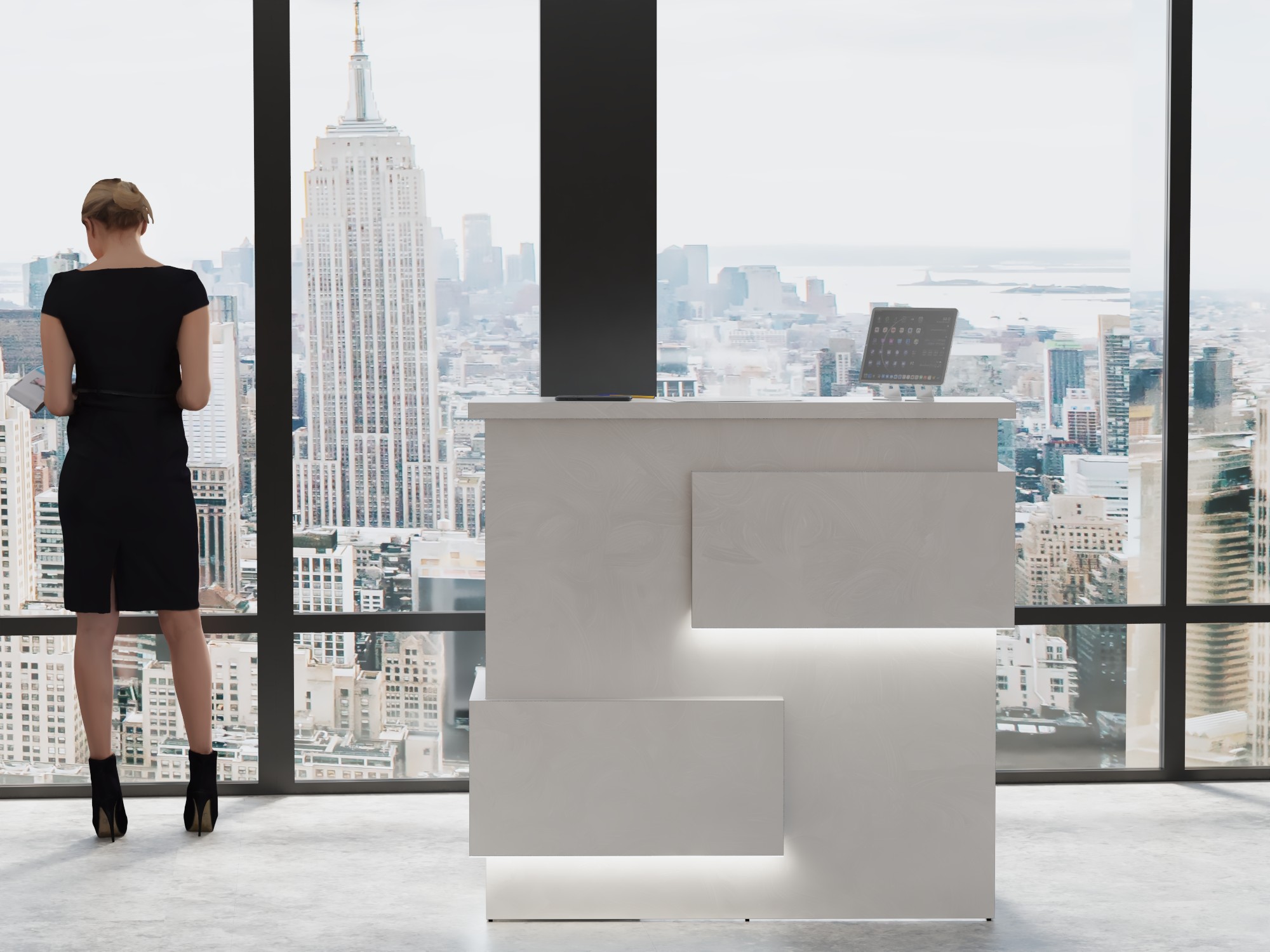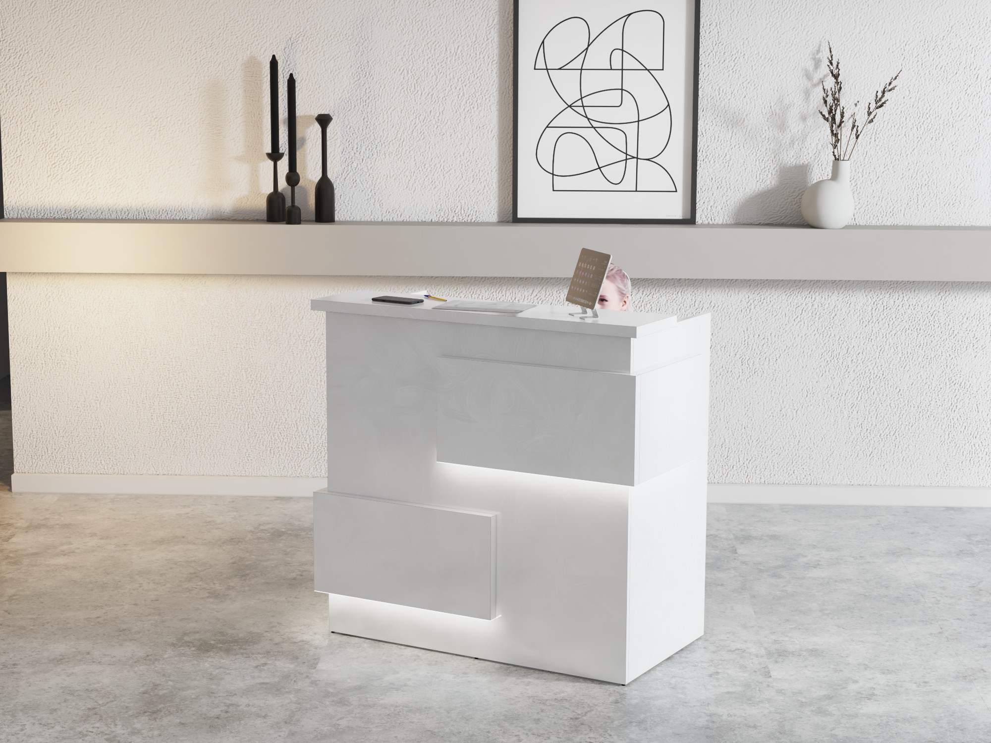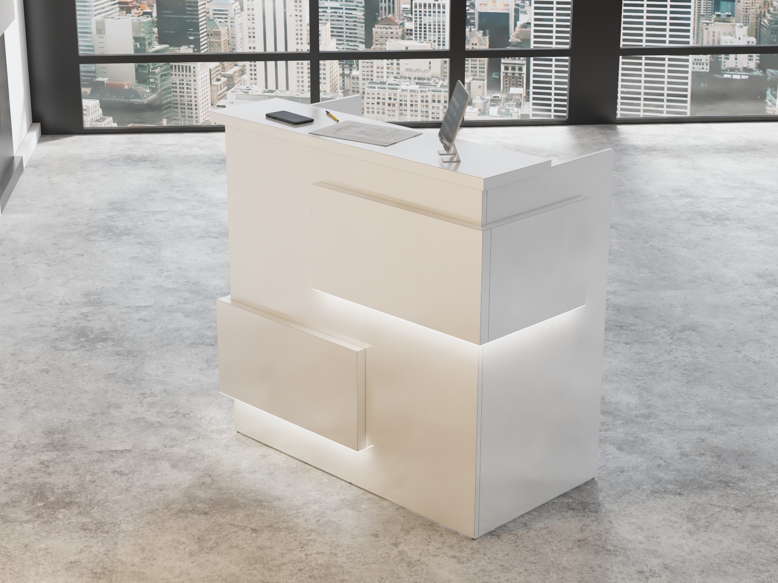 - Praktyczność: Ergonomiczna konstrukcja ułatwia pracę recepcjonisty, umożliwiając wygodną obsługę klientów, przechowywanie dokumentów i obsługę sprzętu biurowego.