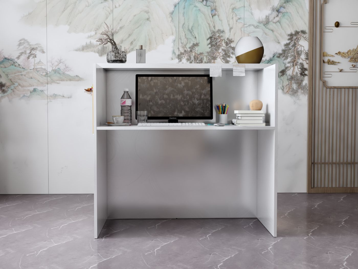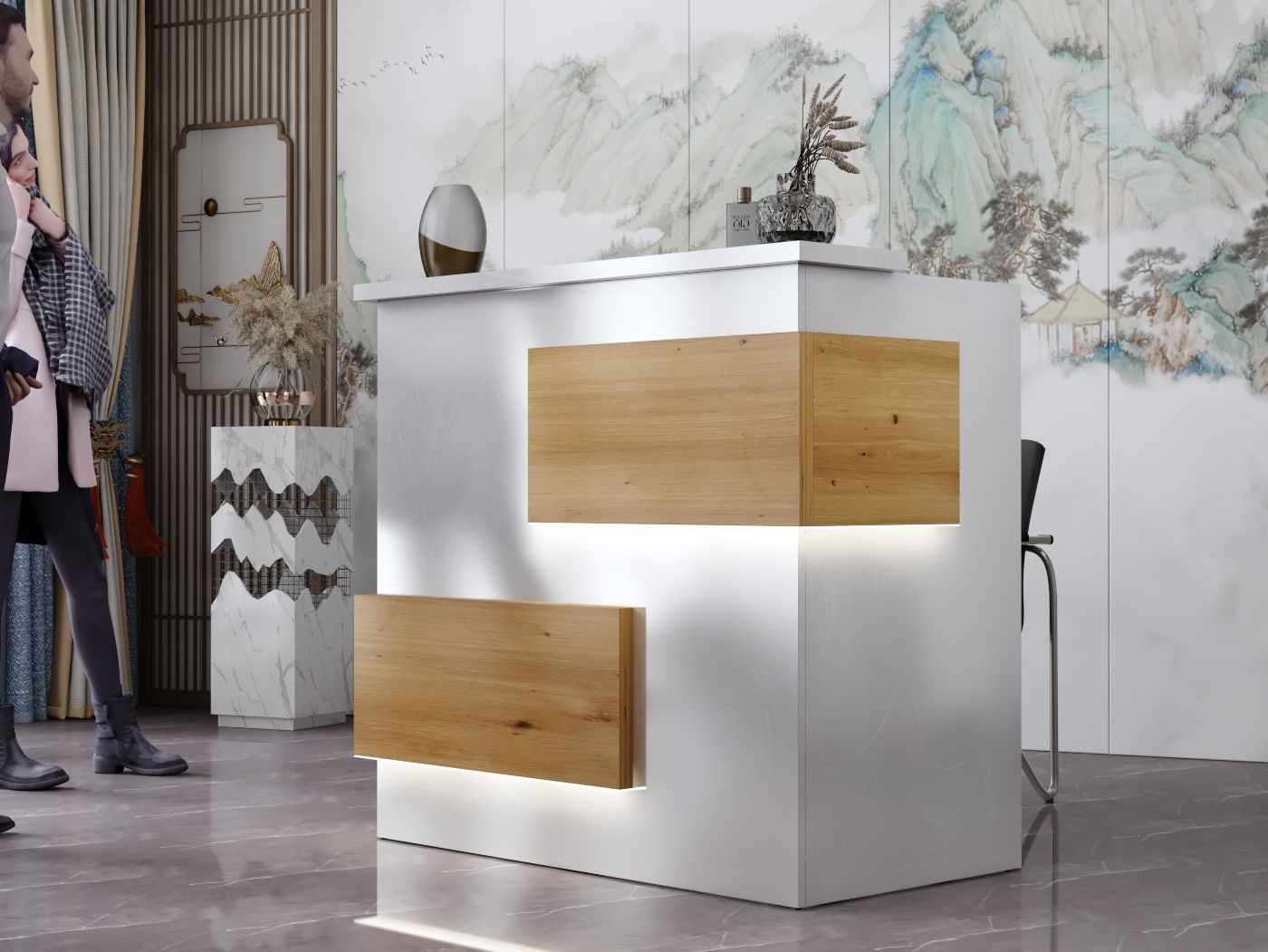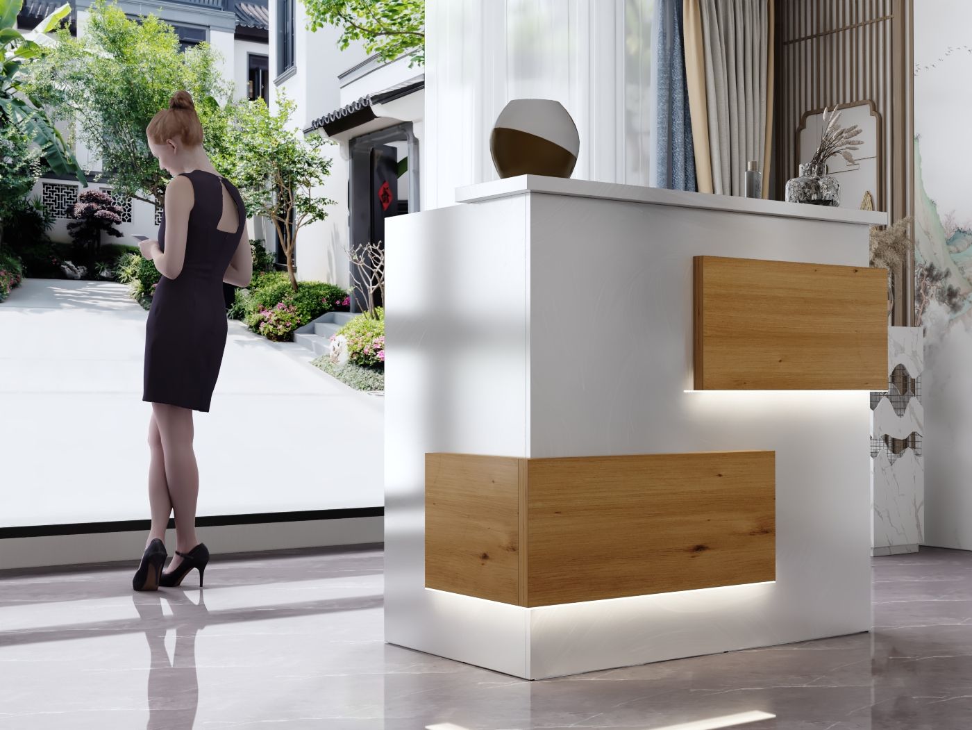 2. Praktyczność: Ergonomiczna konstrukcja ułatwia pracę recepcjonisty, umożliwiając wygodną obsługę klientów, przechowywanie dokumentów i obsługę sprzętu biurowego.