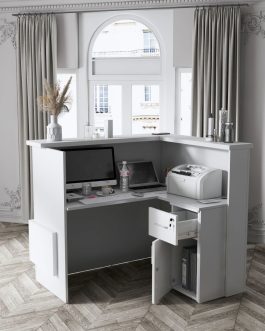 - Praktyczność: Ergonomiczna konstrukcja ułatwia pracę recepcjonisty, umożliwiając wygodną obsługę klientów, przechowywanie dokumentów i obsługę sprzętu biurowego.