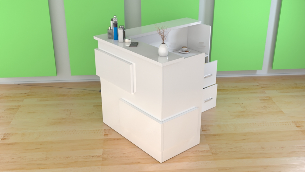 - Praktyczność: Ergonomiczna konstrukcja ułatwia pracę recepcjonisty, umożliwiając wygodną obsługę klientów, przechowywanie dokumentów i obsługę sprzętu biurowego.