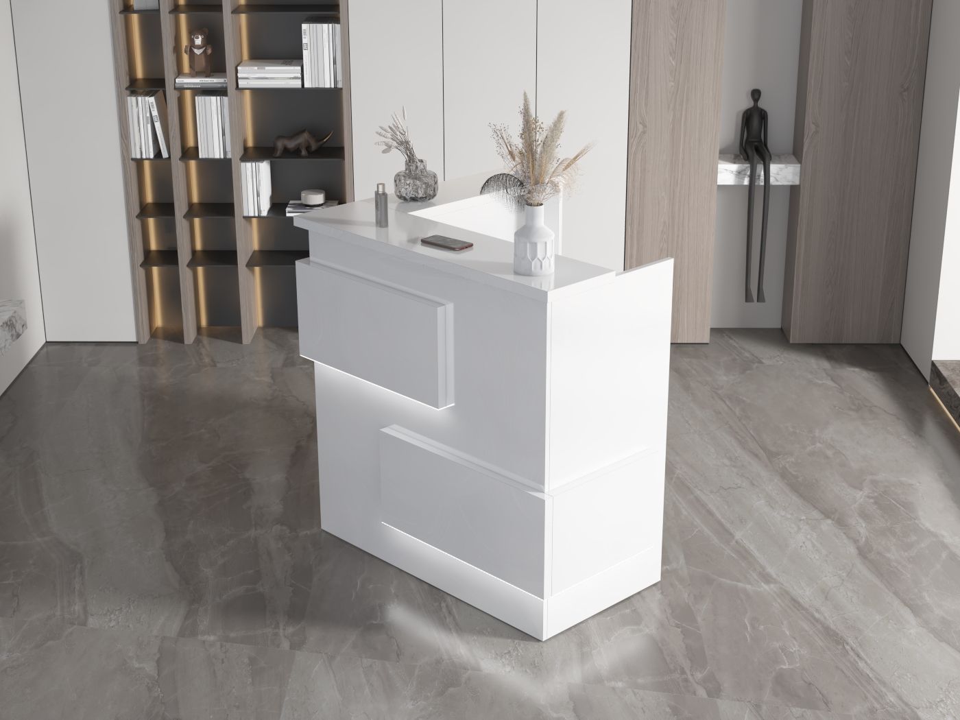 - Praktyczność: Ergonomiczna konstrukcja ułatwia pracę recepcjonisty, umożliwiając wygodną obsługę klientów, przechowywanie dokumentów i obsługę sprzętu biurowego.