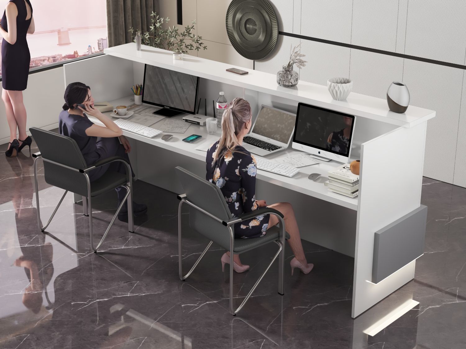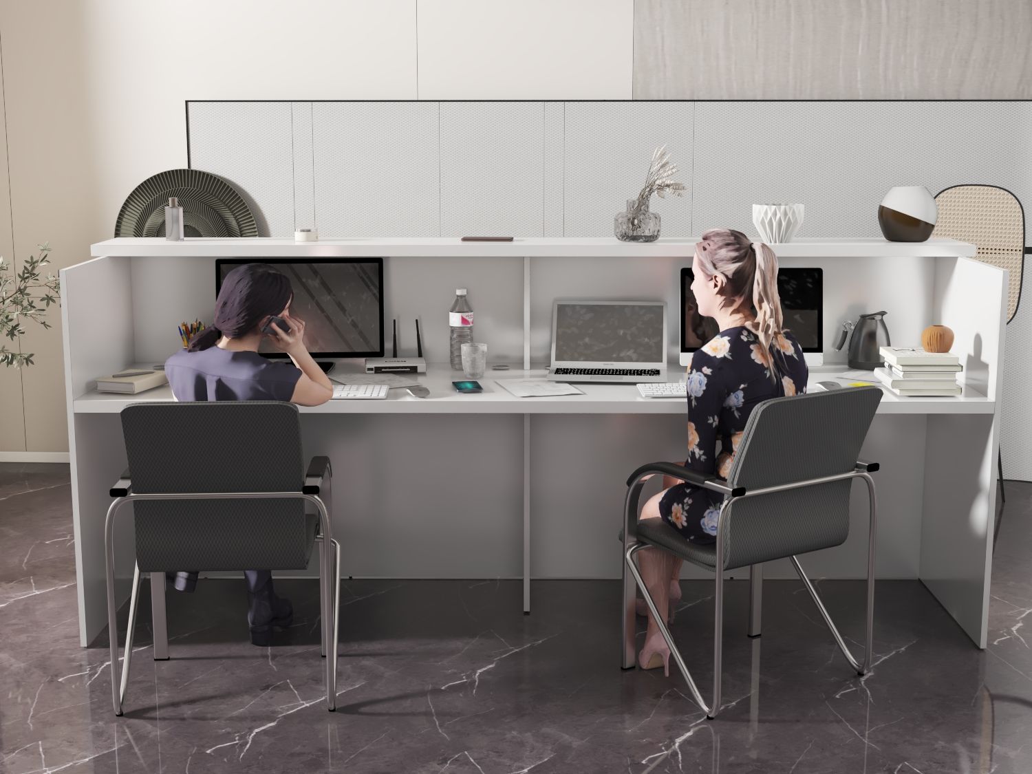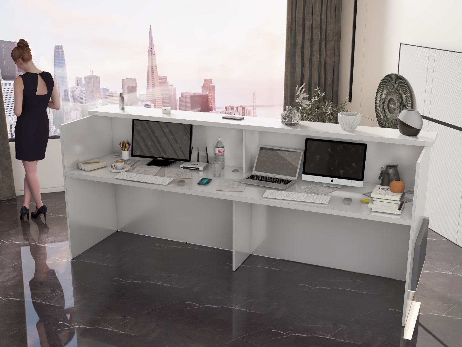 - Praktyczność: Ergonomiczna konstrukcja ułatwia pracę recepcjonisty, umożliwiając wygodną obsługę klientów, przechowywanie dokumentów i obsługę sprzętu biurowego.