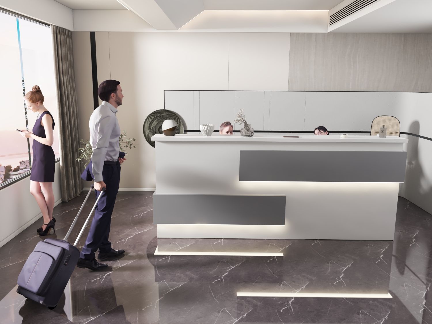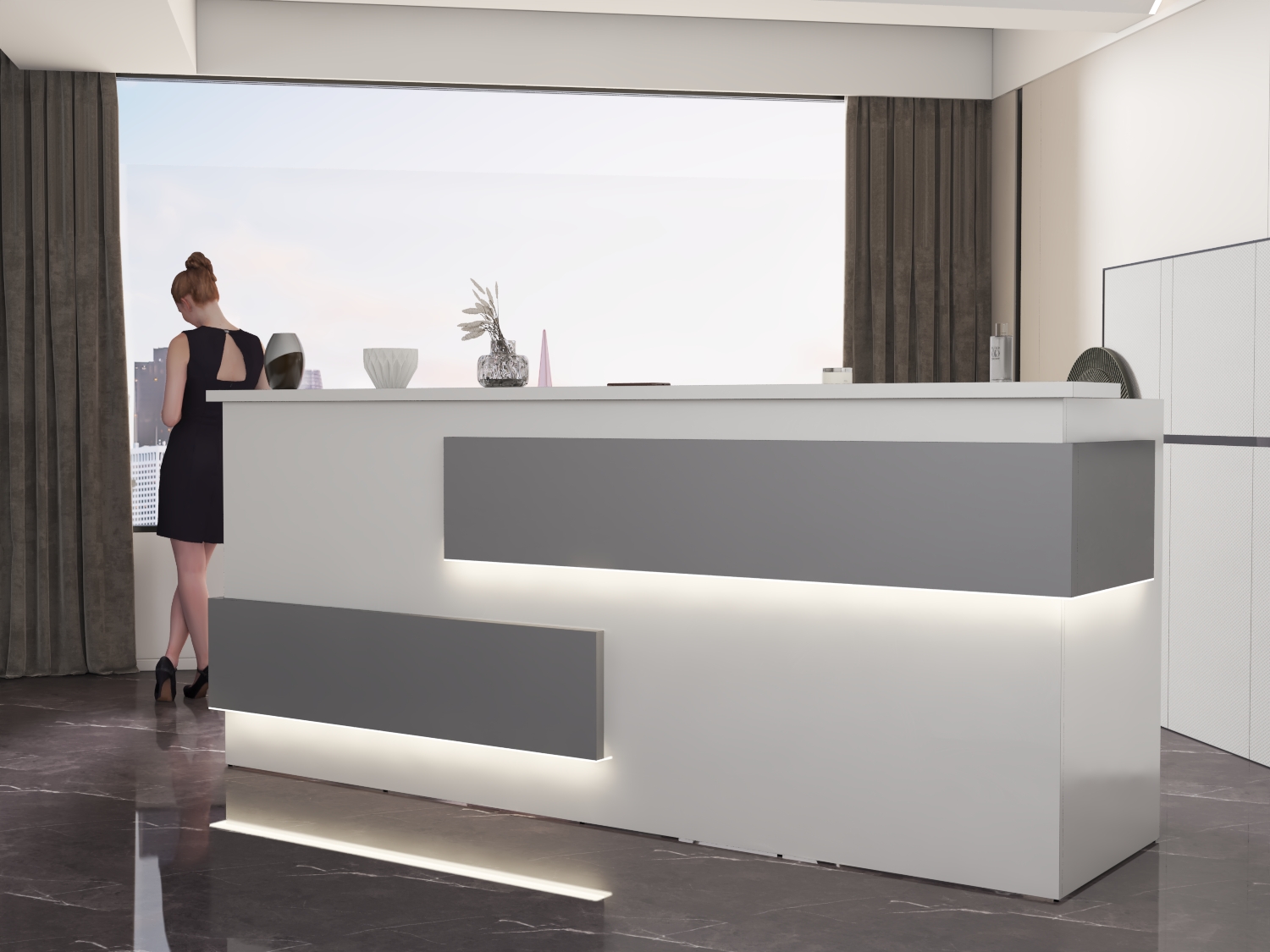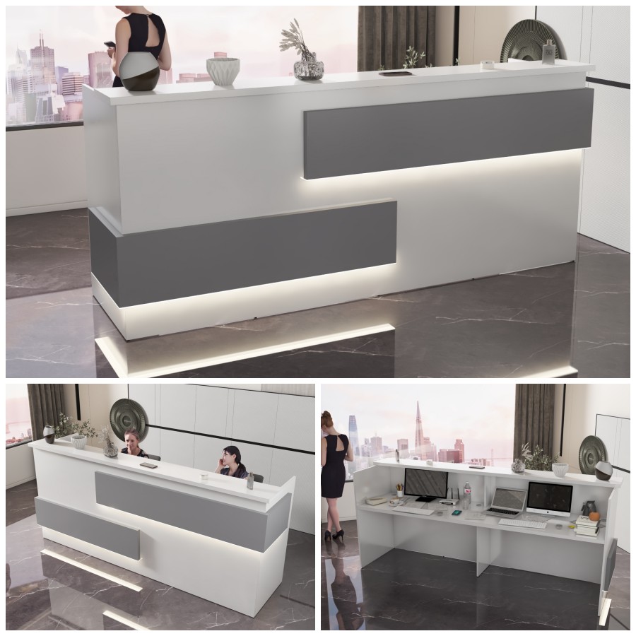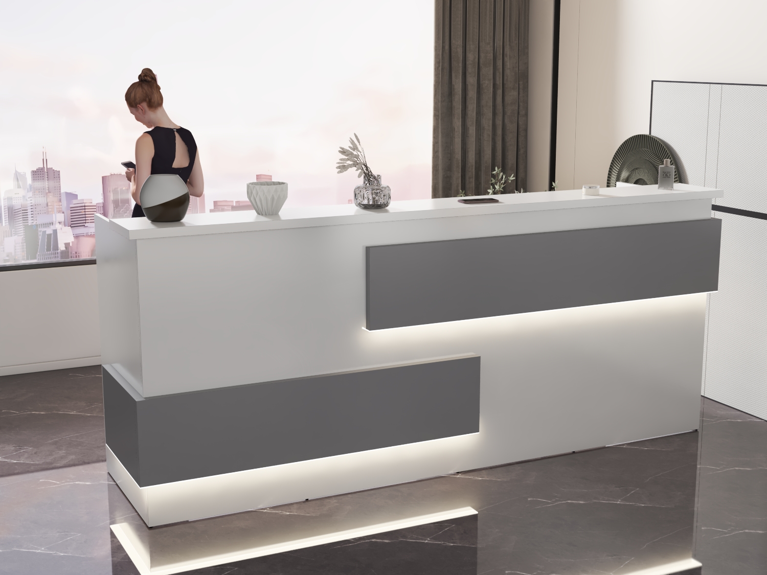 - Praktyczność: Ergonomiczna konstrukcja ułatwia pracę recepcjonisty, umożliwiając wygodną obsługę klientów, przechowywanie dokumentów i obsługę sprzętu biurowego.