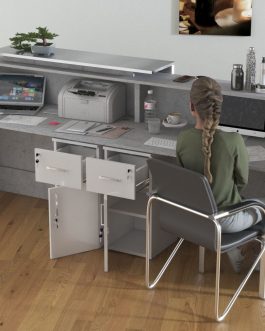 2. Praktyczność: Ergonomiczna konstrukcja ułatwia pracę recepcjonisty, umożliwiając wygodną obsługę klientów, przechowywanie dokumentów i obsługę sprzętu biurowego.