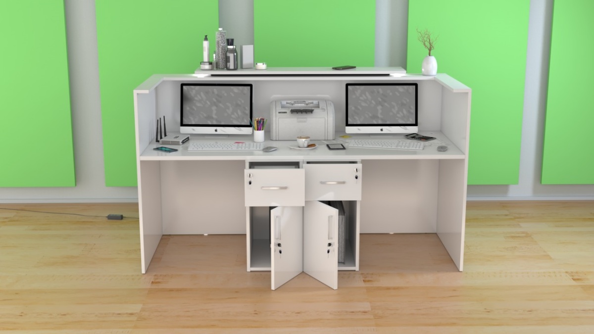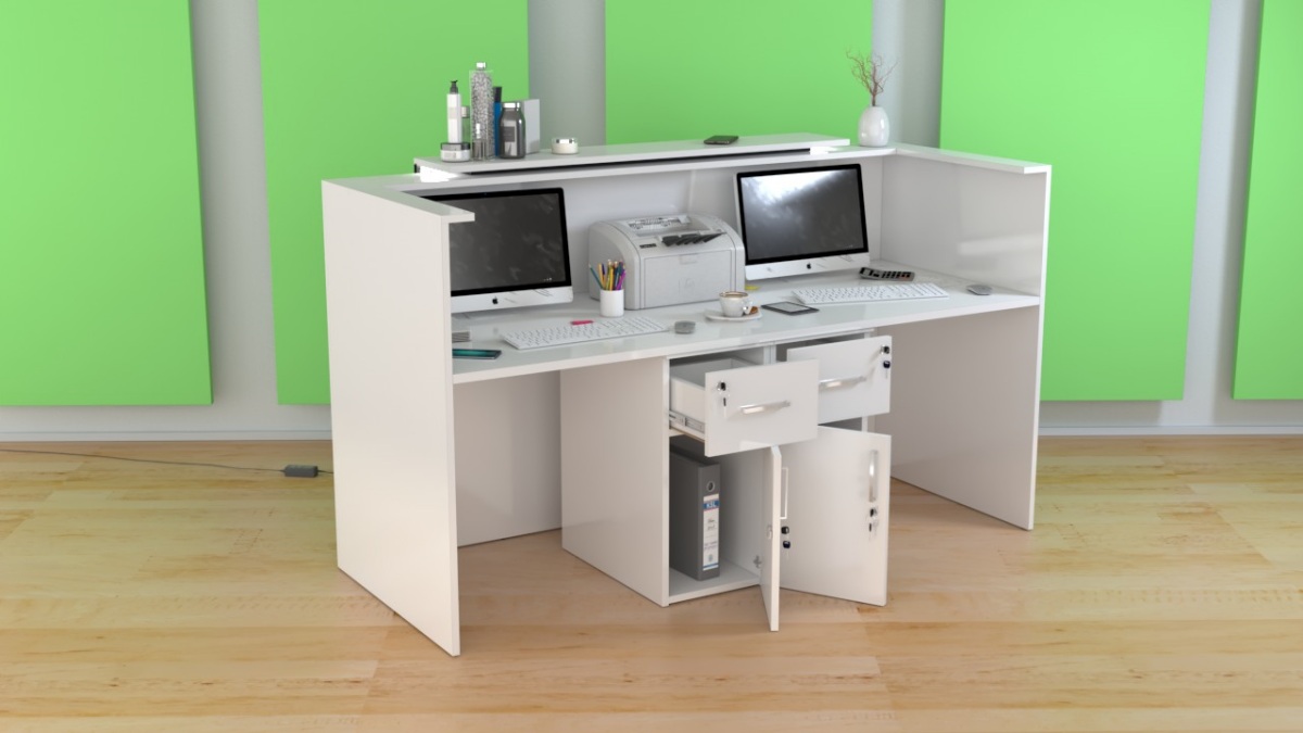 - Praktyczność: Ergonomiczna konstrukcja ułatwia pracę recepcjonisty, umożliwiając wygodną obsługę klientów, przechowywanie dokumentów i obsługę sprzętu biurowego.