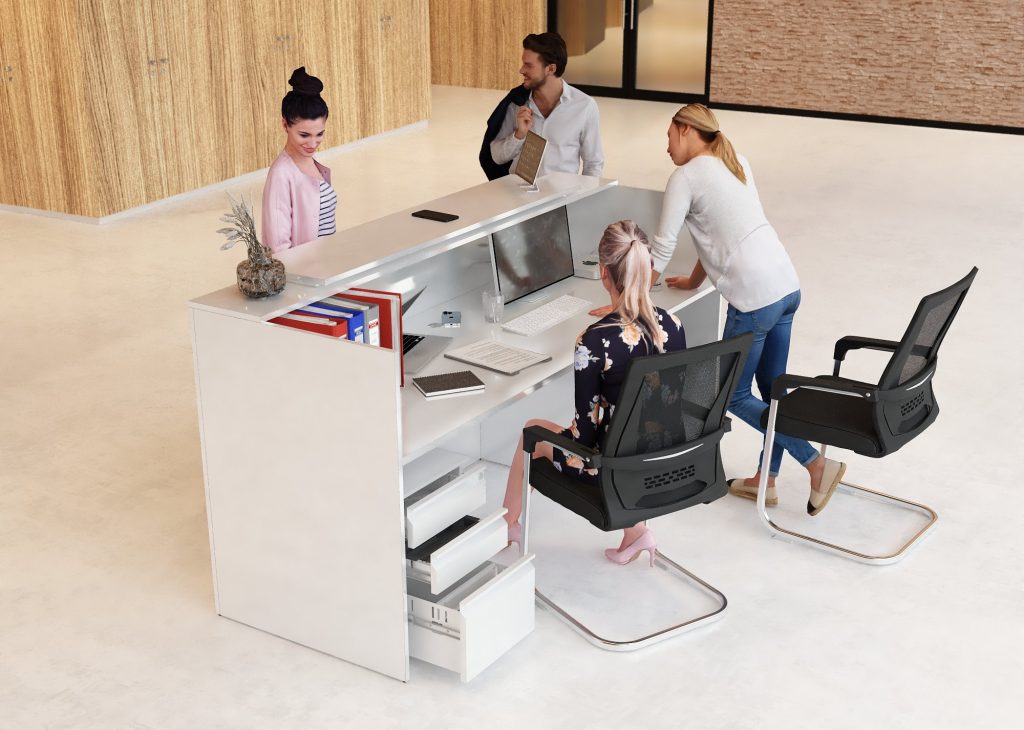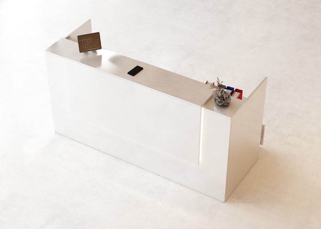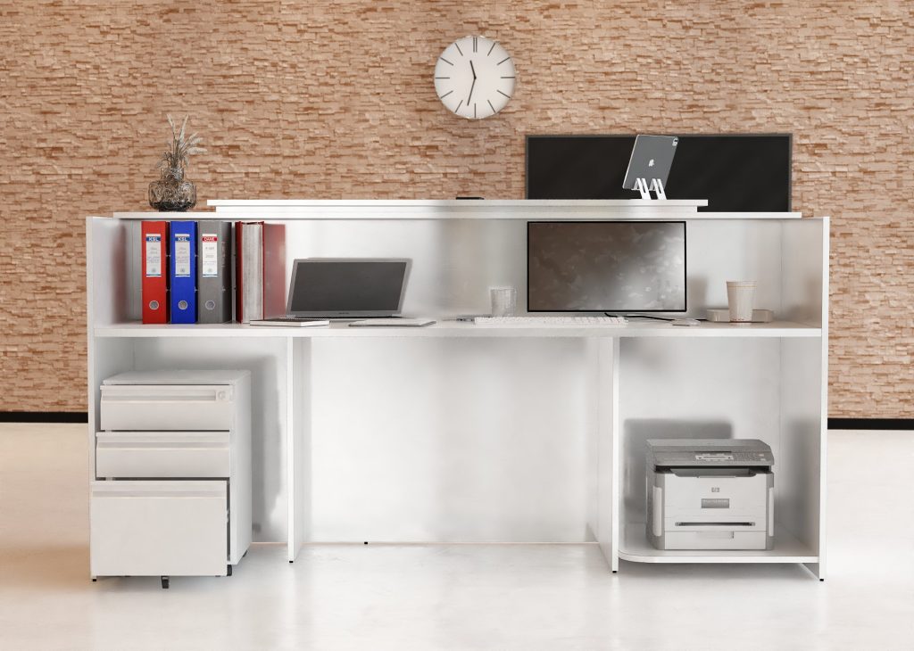 - Praktyczność: Ergonomiczna konstrukcja ułatwia pracę recepcjonisty, umożliwiając wygodną obsługę klientów, przechowywanie dokumentów i obsługę sprzętu biurowego.