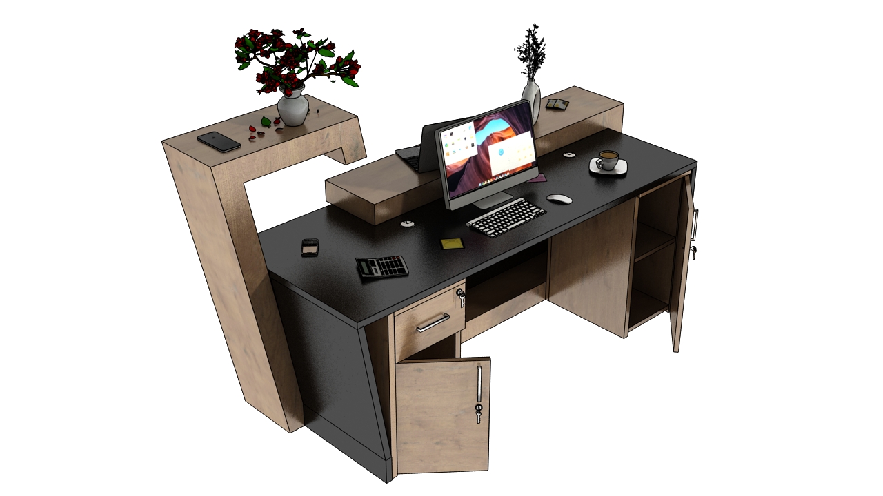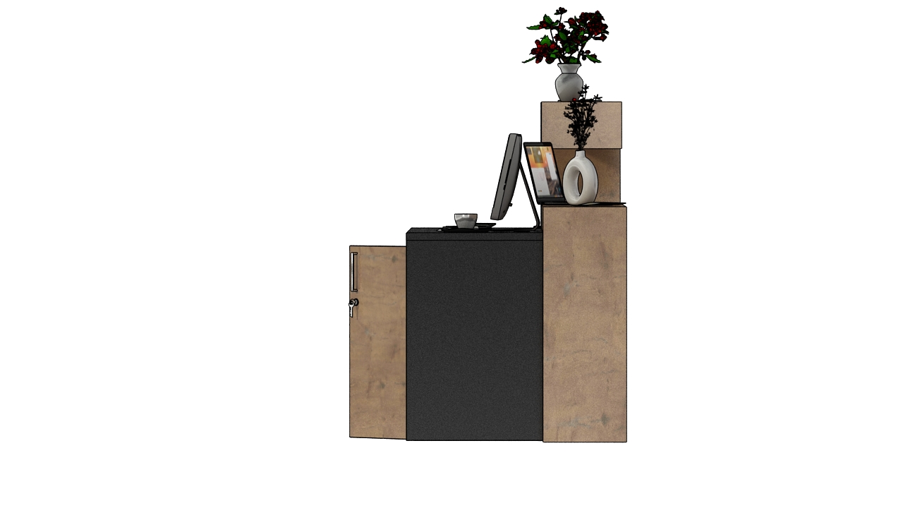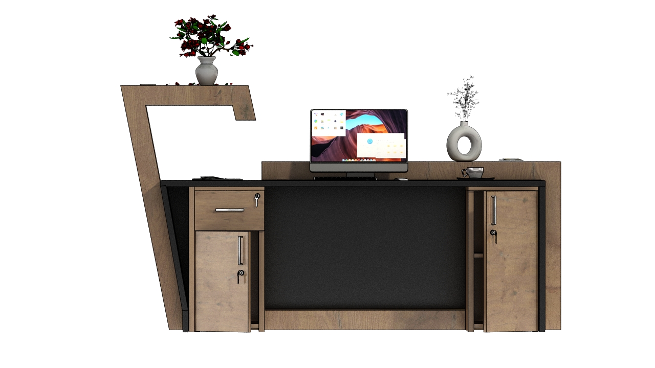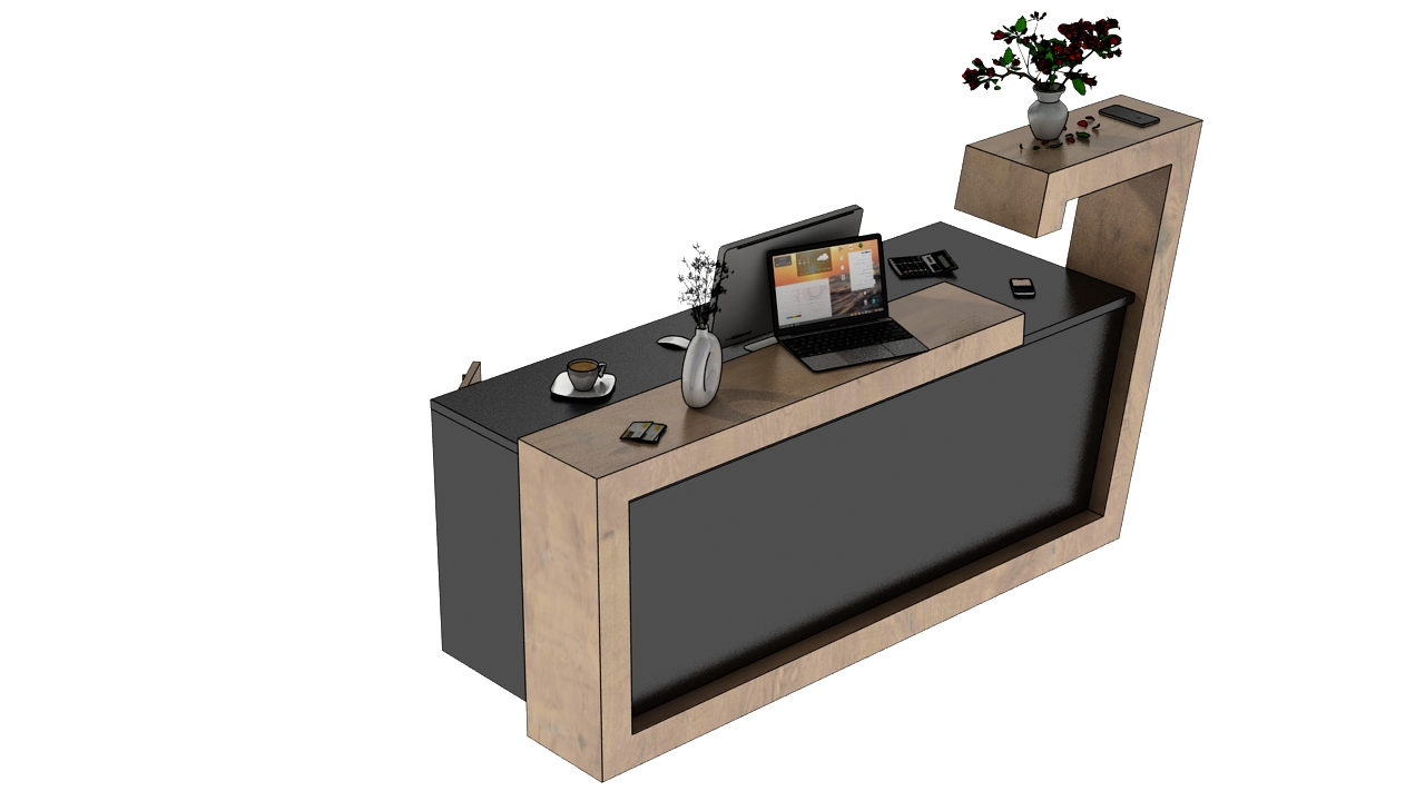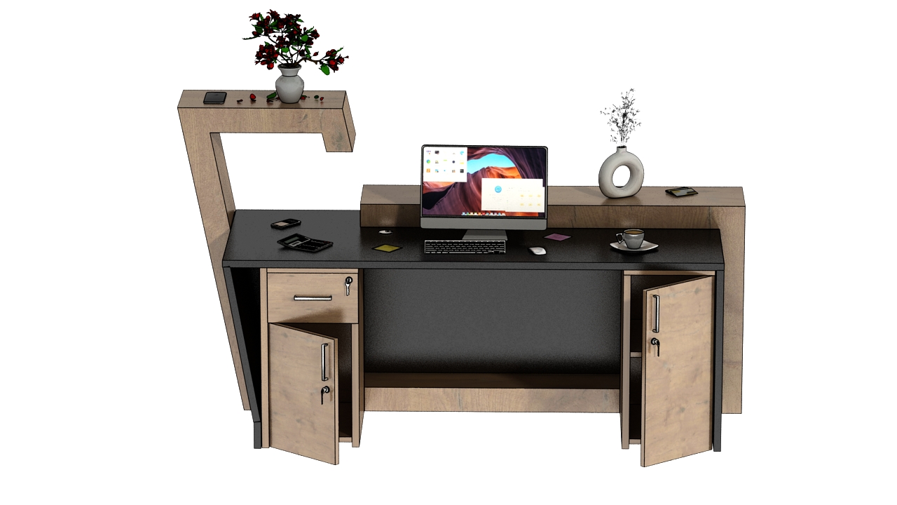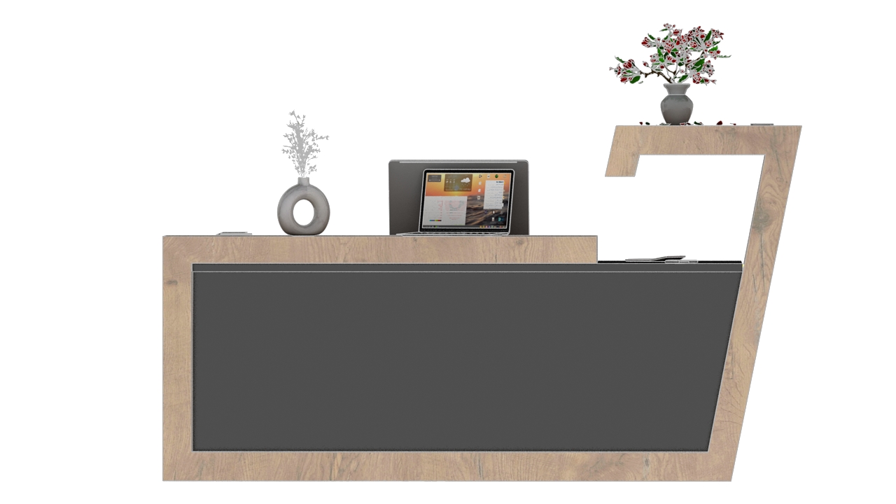 2. Praktyczność: Ergonomiczna konstrukcja ułatwia pracę recepcjonisty, umożliwiając wygodną obsługę klientów, przechowywanie dokumentów i obsługę sprzętu biurowego.