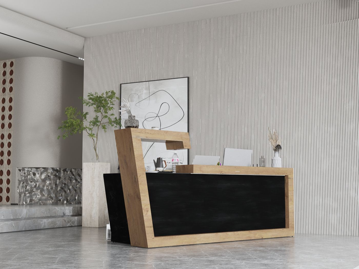 2. Praktyczność: Ergonomiczna konstrukcja ułatwia pracę recepcjonisty, umożliwiając wygodną obsługę klientów, przechowywanie dokumentów i obsługę sprzętu biurowego.