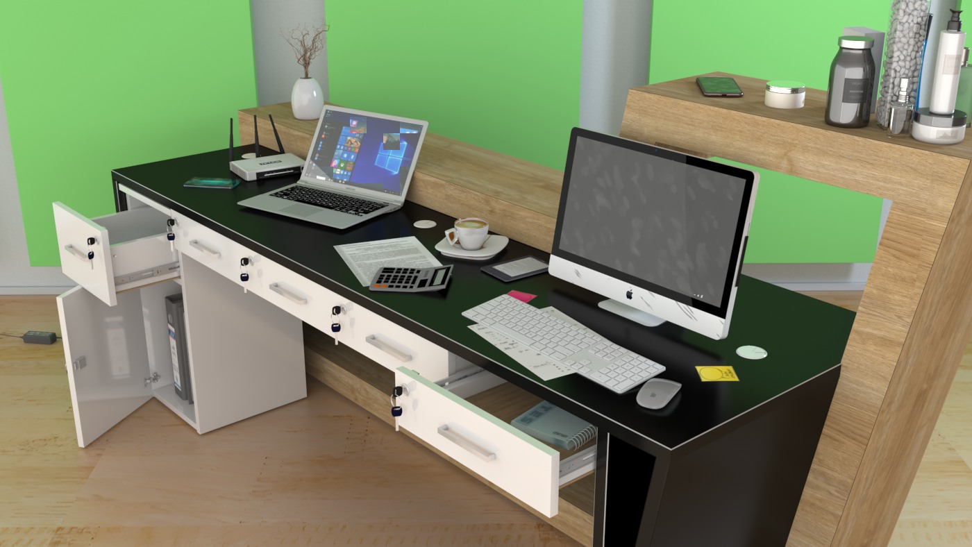 - Praktyczność: Ergonomiczna konstrukcja ułatwia pracę recepcjonisty, umożliwiając wygodną obsługę klientów, przechowywanie dokumentów i obsługę sprzętu biurowego.