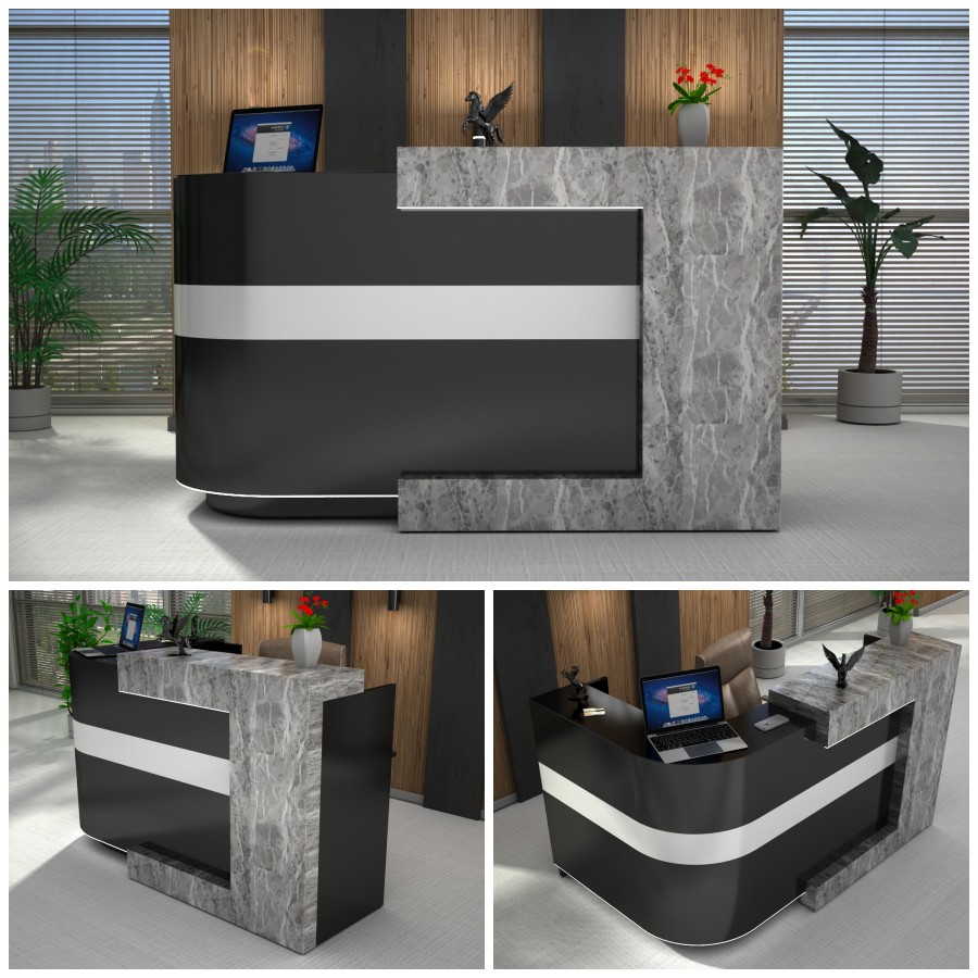 - Praktyczność: Ergonomiczna konstrukcja ułatwia pracę recepcjonisty, umożliwiając wygodną obsługę klientów, przechowywanie dokumentów i obsługę sprzętu biurowego.