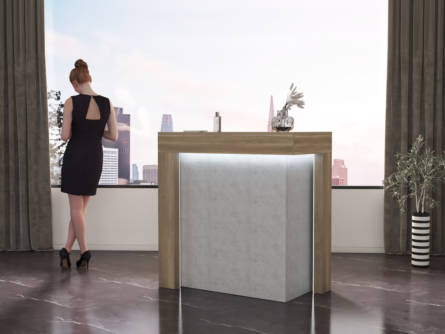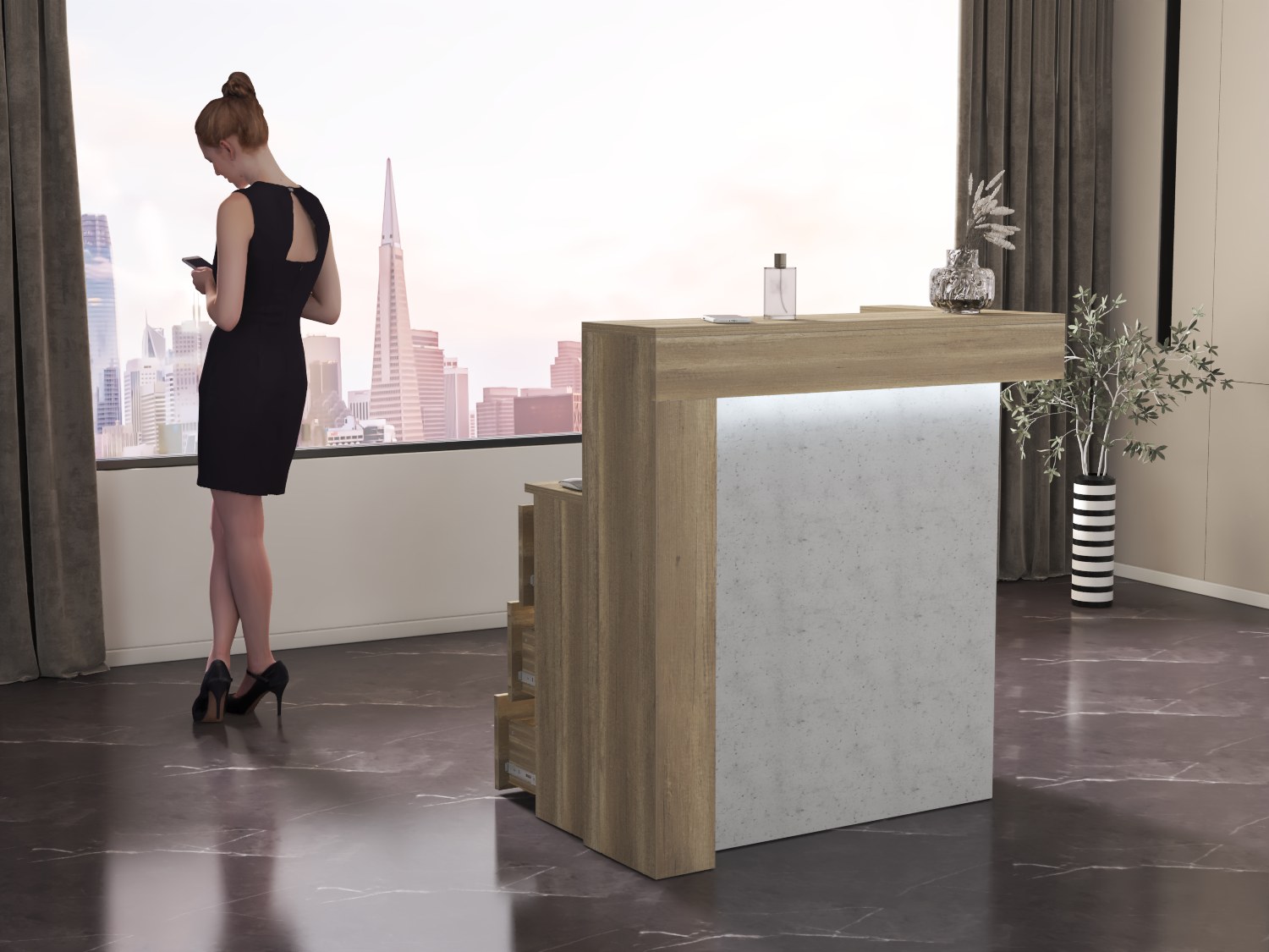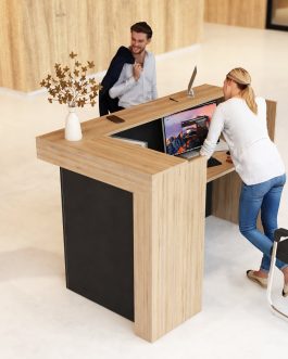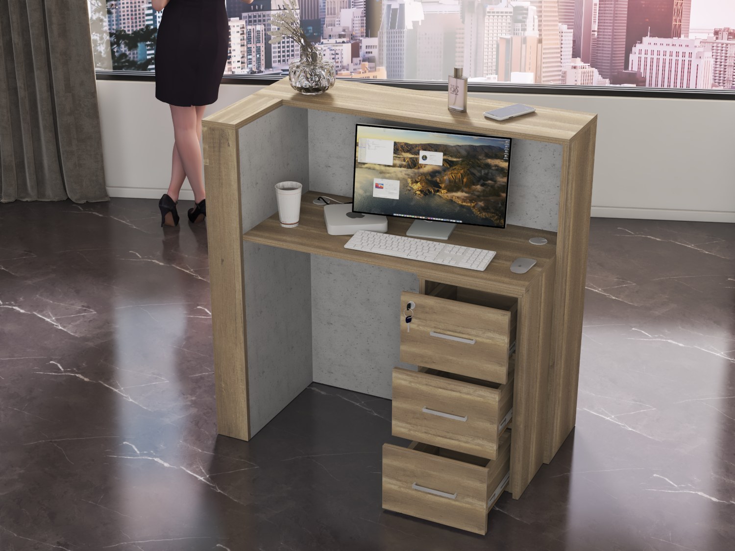 - Praktyczność: Ergonomiczna konstrukcja ułatwia pracę recepcjonisty, umożliwiając wygodną obsługę klientów, przechowywanie dokumentów i obsługę sprzętu biurowego.
