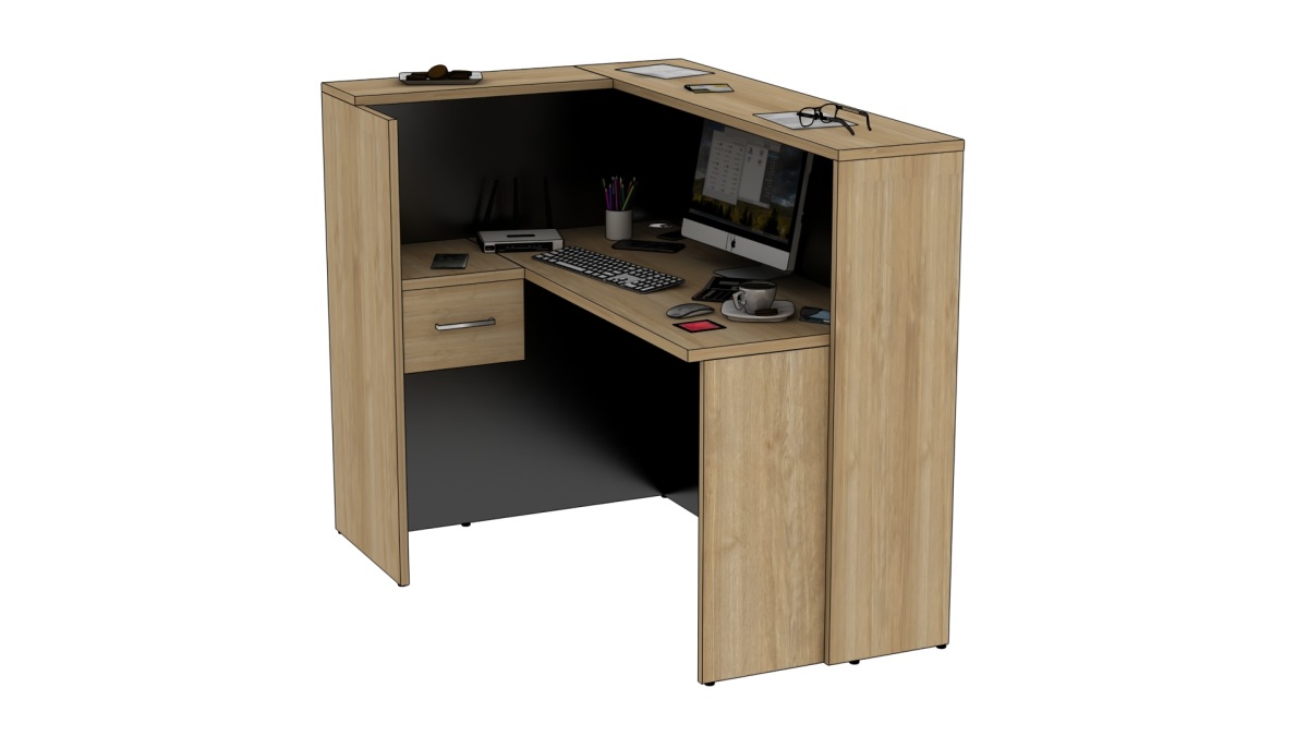 2. Praktyczność: Ergonomiczna konstrukcja ułatwia pracę recepcjonisty, umożliwiając wygodną obsługę klientów, przechowywanie dokumentów i obsługę sprzętu biurowego.