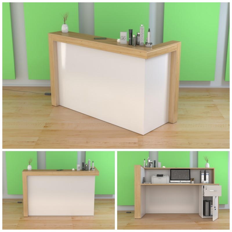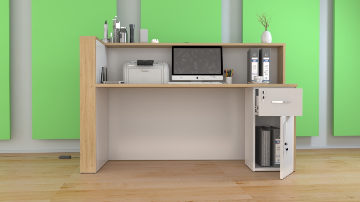 - Praktyczność: Ergonomiczna konstrukcja ułatwia pracę recepcjonisty, umożliwiając wygodną obsługę klientów, przechowywanie dokumentów i obsługę sprzętu biurowego.