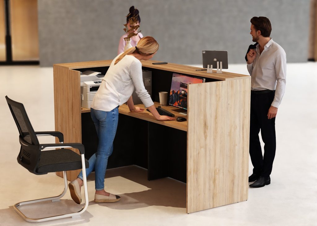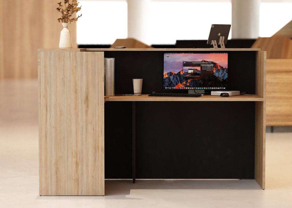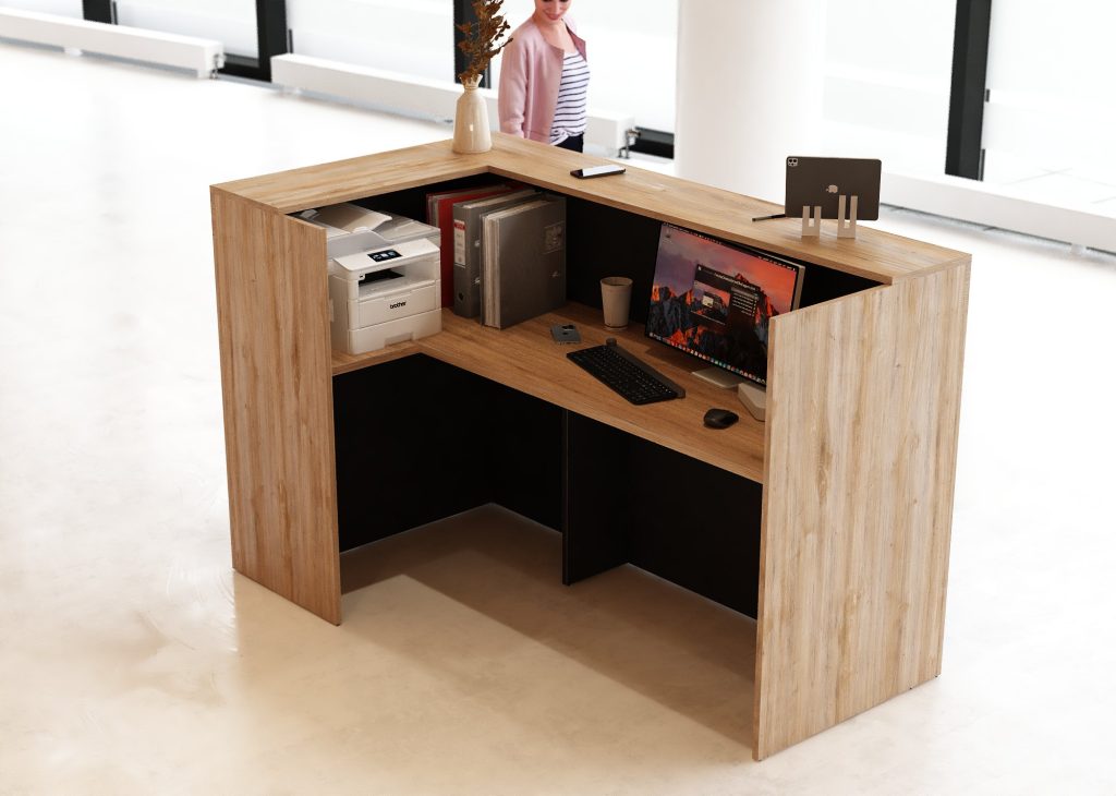 - Praktyczność: Ergonomiczna konstrukcja ułatwia pracę recepcjonisty, umożliwiając wygodną obsługę klientów, przechowywanie dokumentów i obsługę sprzętu biurowego.