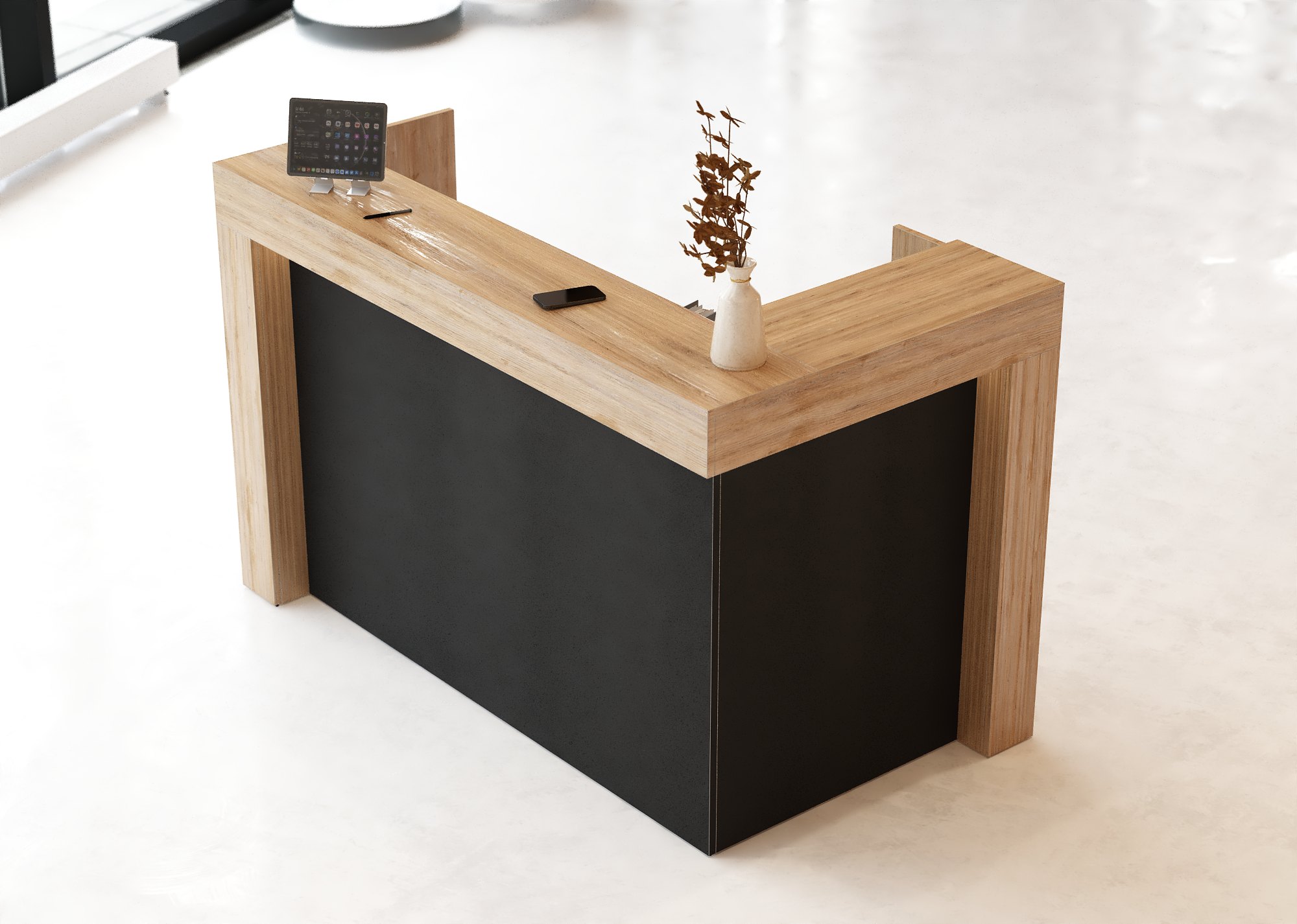 - Praktyczność: Ergonomiczna konstrukcja ułatwia pracę recepcjonisty, umożliwiając wygodną obsługę klientów, przechowywanie dokumentów i obsługę sprzętu biurowego.
