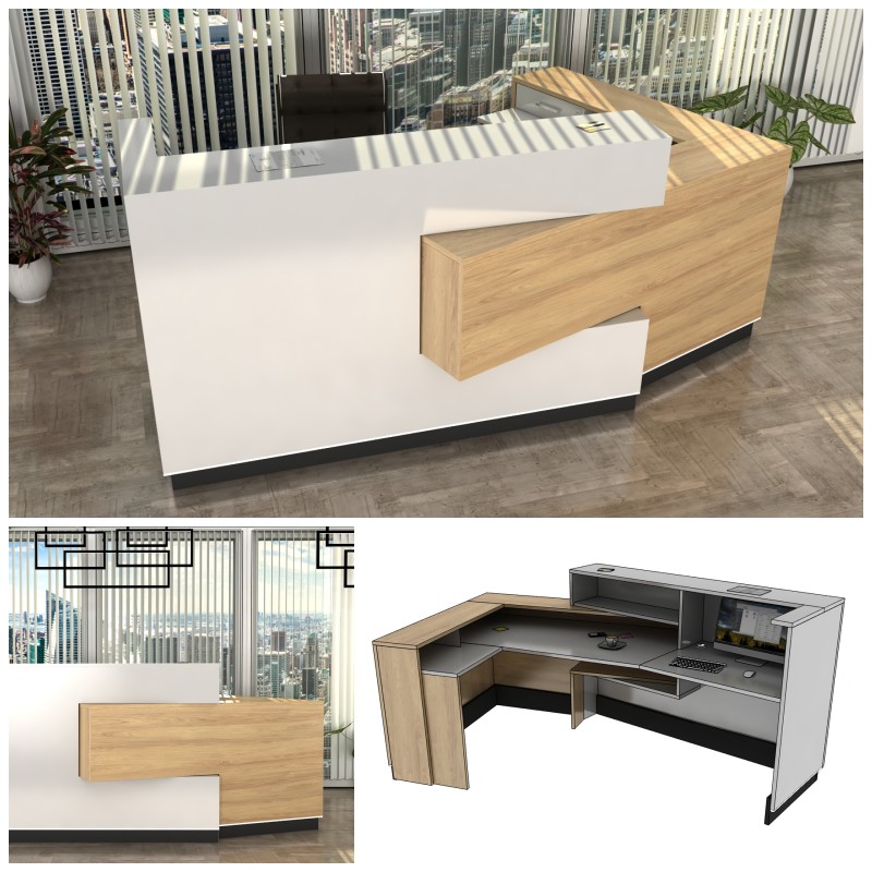 - Praktyczność: Ergonomiczna konstrukcja ułatwia pracę recepcjonisty, umożliwiając wygodną obsługę klientów, przechowywanie dokumentów i obsługę sprzętu biurowego.