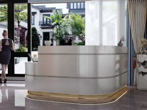 - Praktyczność: Ergonomiczna konstrukcja ułatwia pracę recepcjonisty, umożliwiając wygodną obsługę klientów, przechowywanie dokumentów i obsługę sprzętu biurowego.
