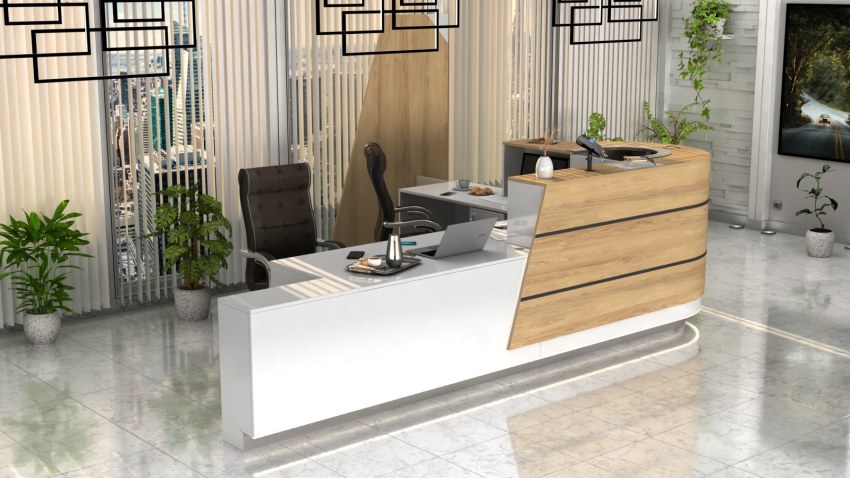 Minimalistyczna recepcja biurowa – Dostosowana do Twoich potrzeb.