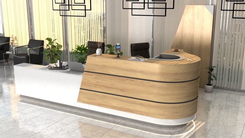 - Praktyczność: Ergonomiczna konstrukcja ułatwia pracę recepcjonisty, umożliwiając wygodną obsługę klientów, przechowywanie dokumentów i obsługę sprzętu biurowego.