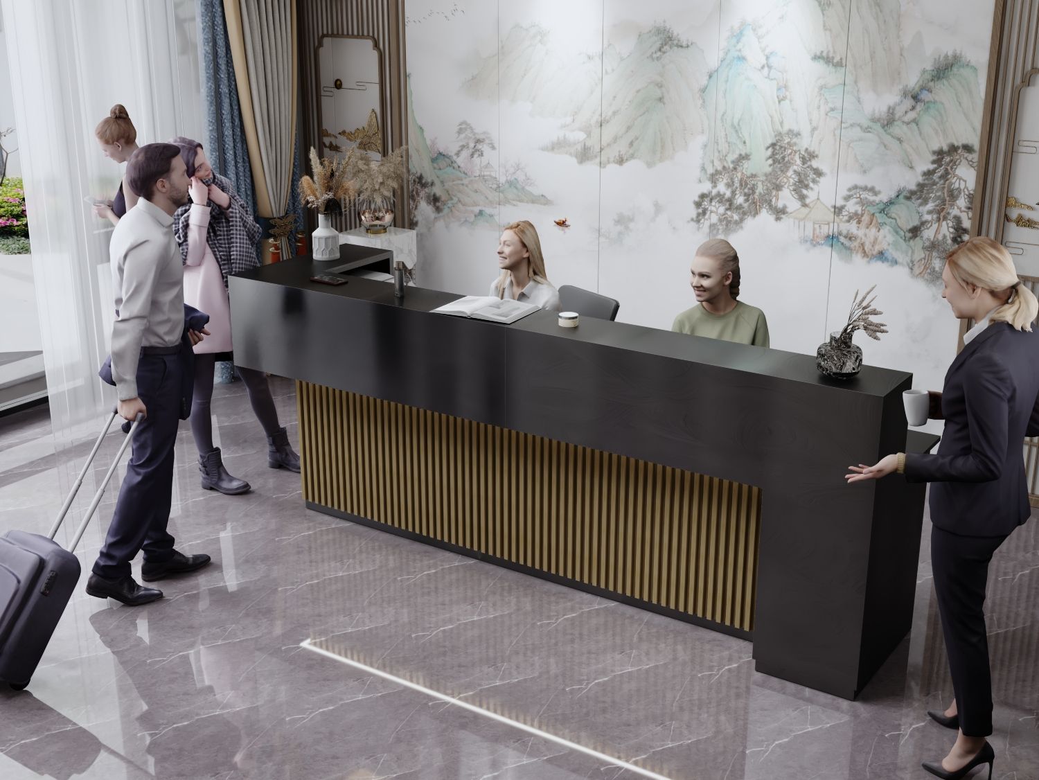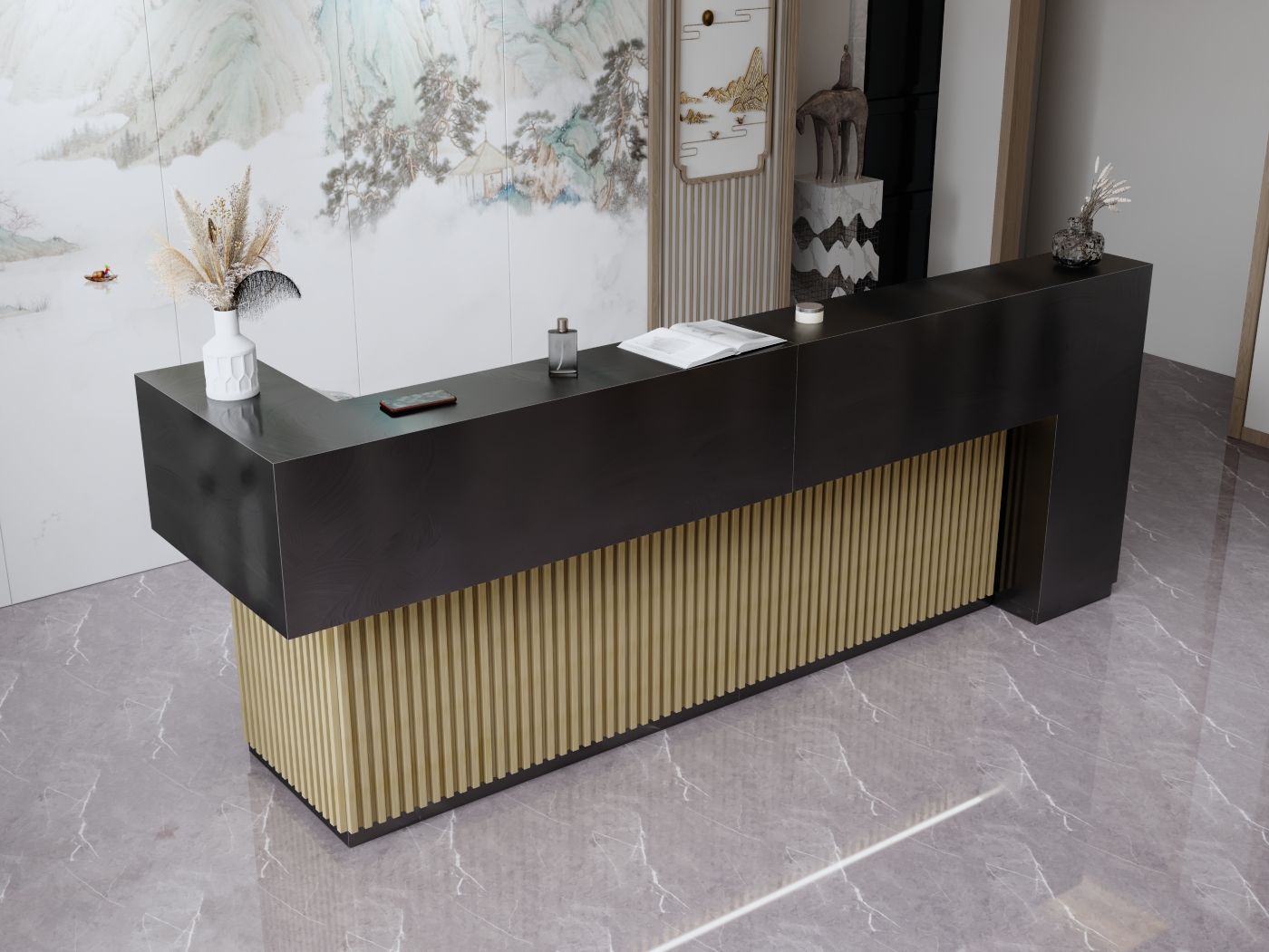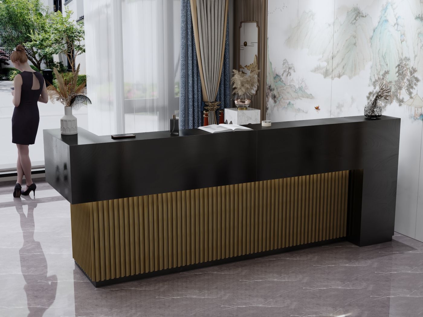 - Praktyczność: Ergonomiczna konstrukcja ułatwia pracę recepcjonisty, umożliwiając wygodną obsługę klientów, przechowywanie dokumentów i obsługę sprzętu biurowego.