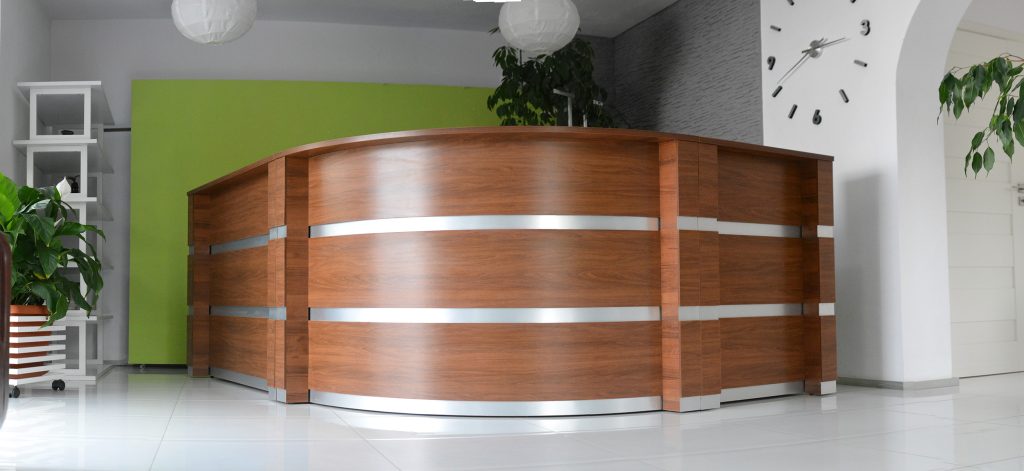 - Klasyczne lady biurowe: Proste i funkcjonalne, idealne do biur i urzędów.