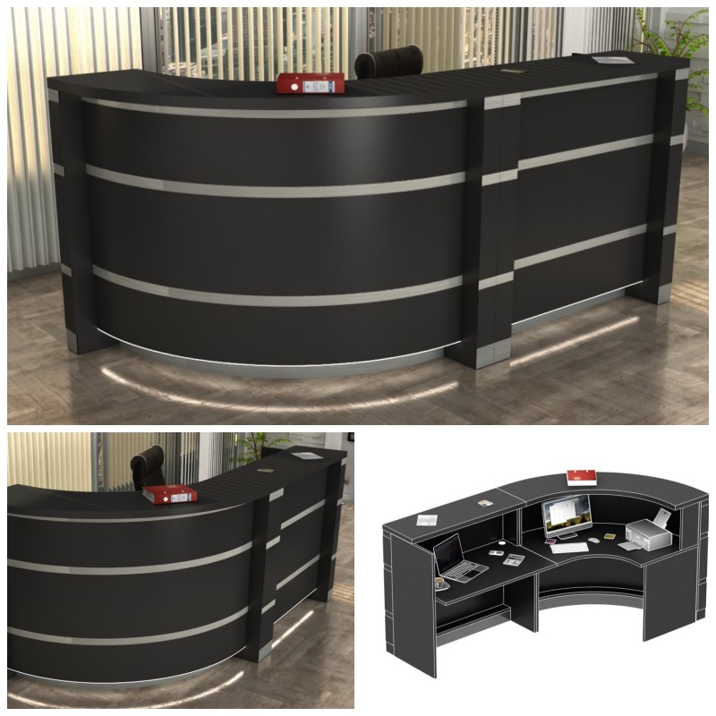 - Praktyczność: Ergonomiczna konstrukcja ułatwia pracę recepcjonisty, umożliwiając wygodną obsługę klientów, przechowywanie dokumentów i obsługę sprzętu biurowego.