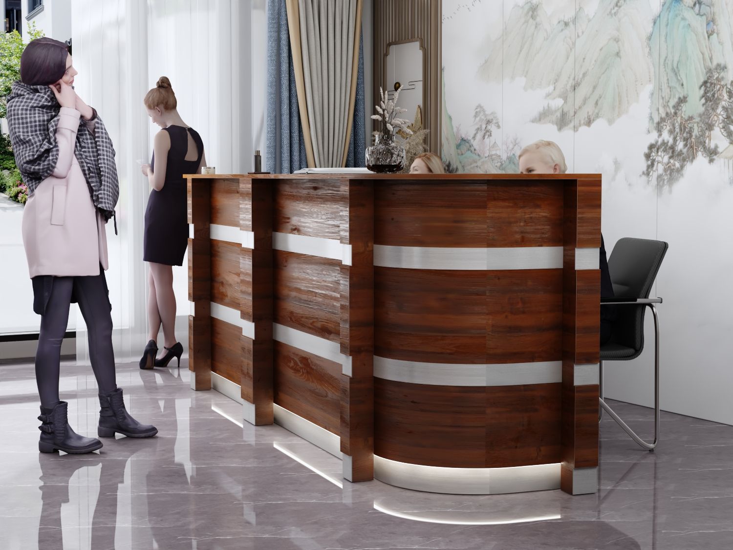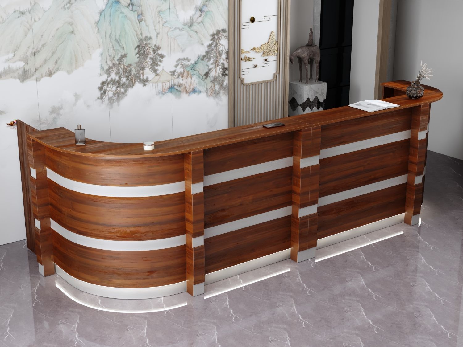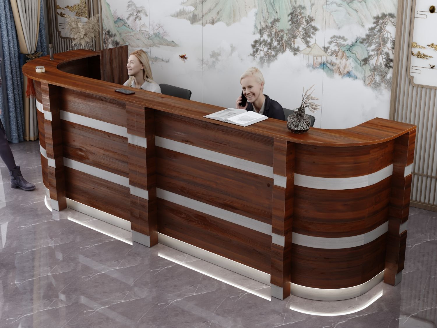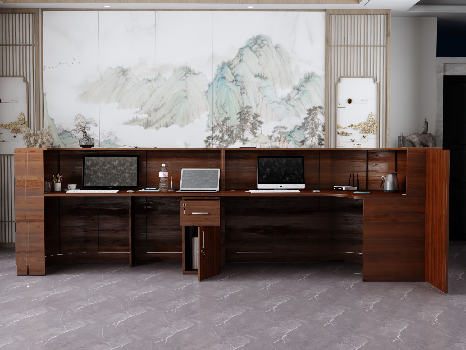 - Praktyczność: Ergonomiczna konstrukcja ułatwia pracę recepcjonisty, umożliwiając wygodną obsługę klientów, przechowywanie dokumentów i obsługę sprzętu biurowego.