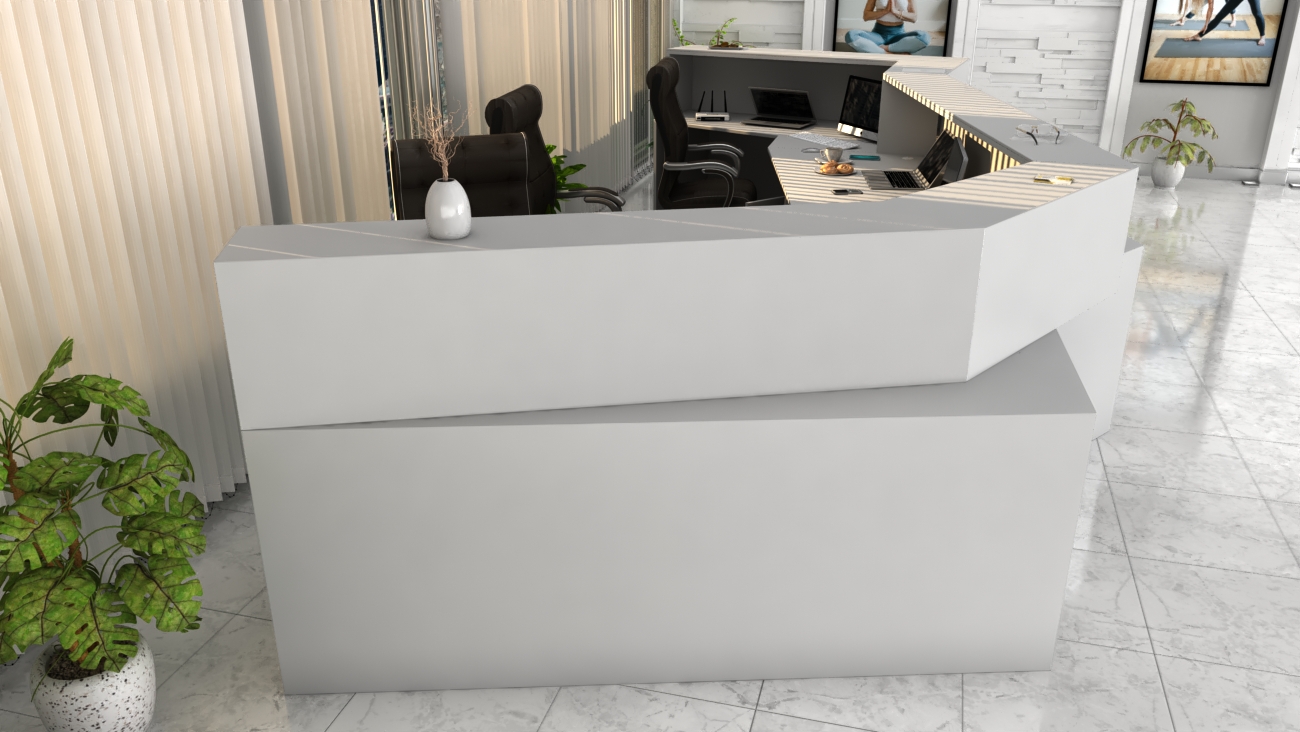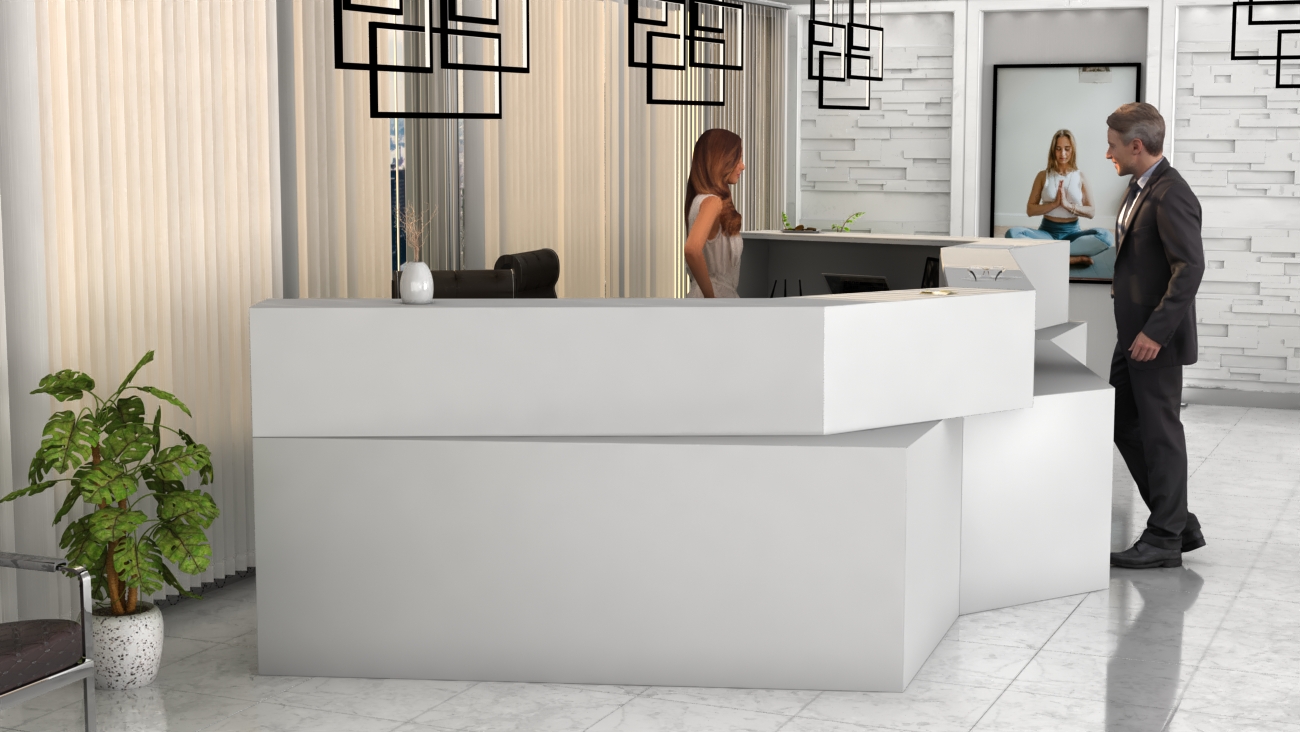 - Praktyczność: Ergonomiczna konstrukcja ułatwia pracę recepcjonisty, umożliwiając wygodną obsługę klientów, przechowywanie dokumentów i obsługę sprzętu biurowego.