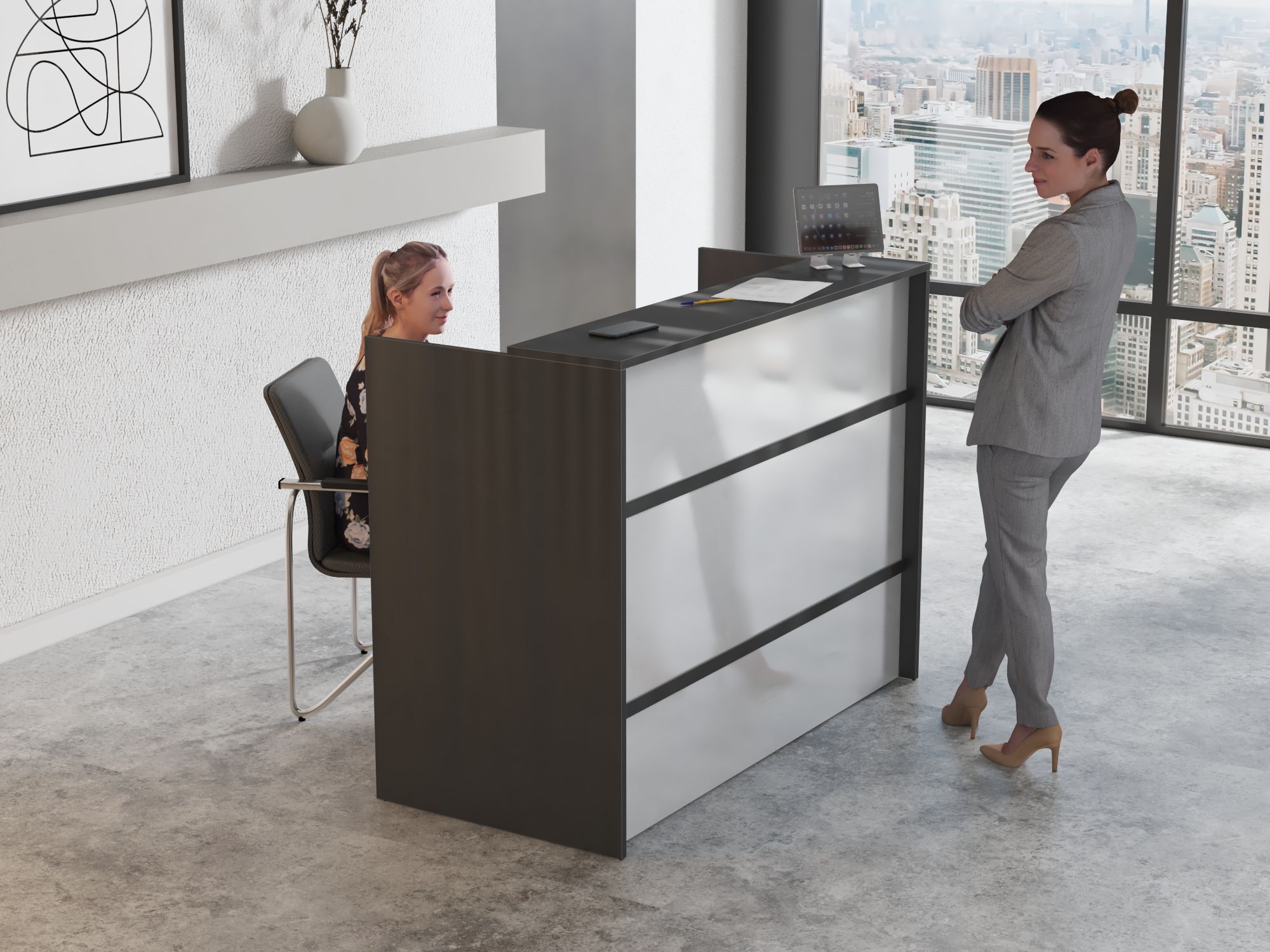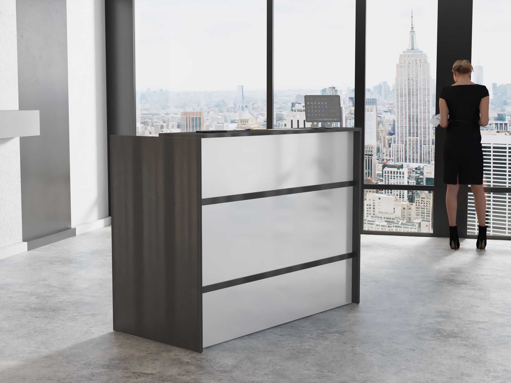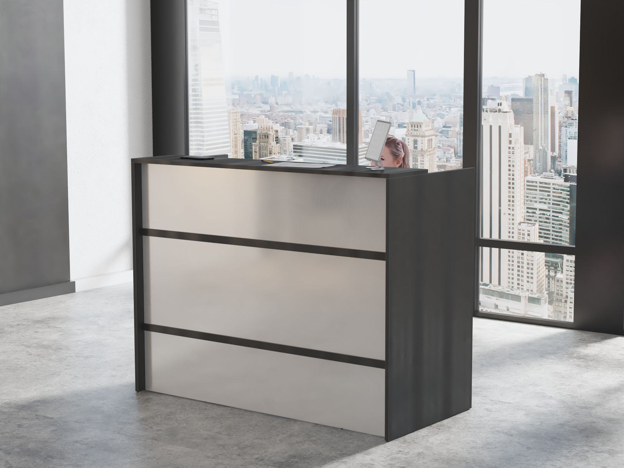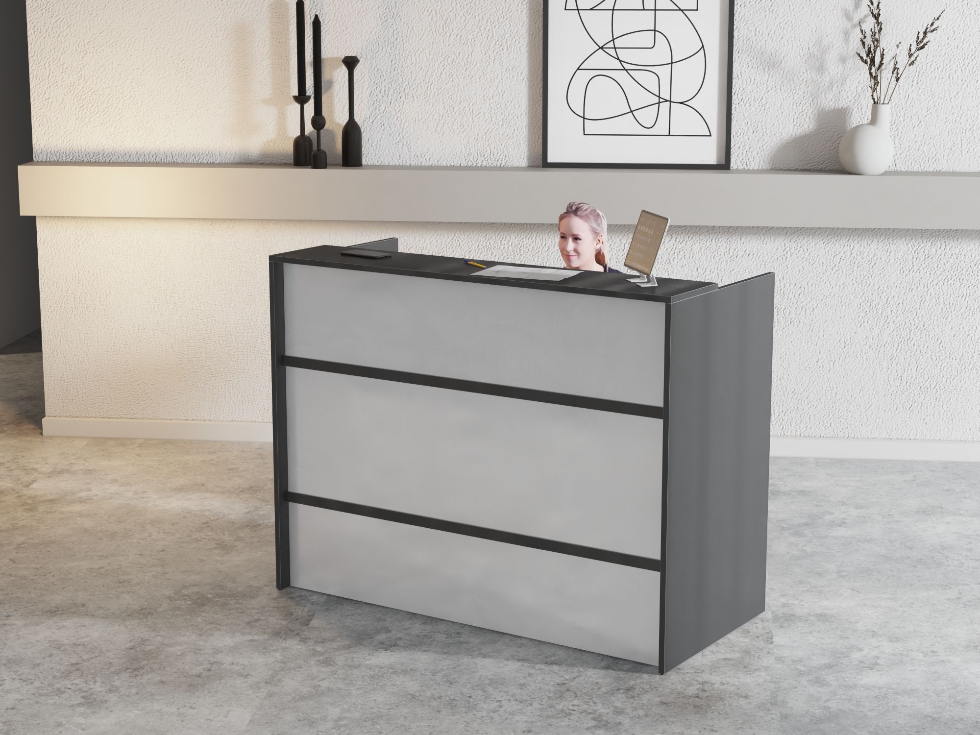 2. Praktyczność: Ergonomiczna konstrukcja ułatwia pracę recepcjonisty, umożliwiając wygodną obsługę klientów, przechowywanie dokumentów i obsługę sprzętu biurowego.