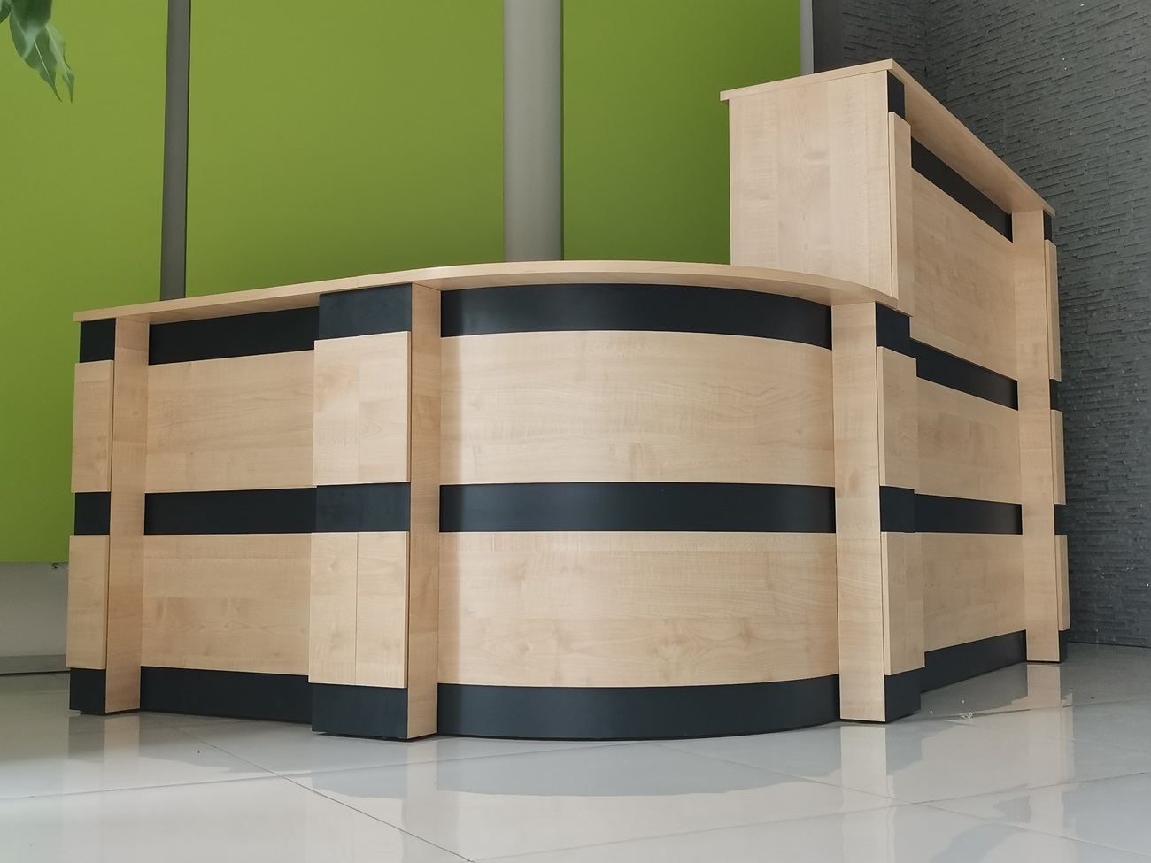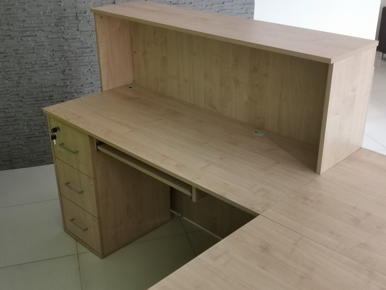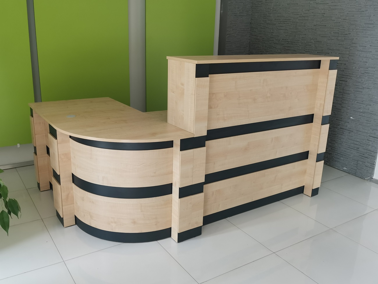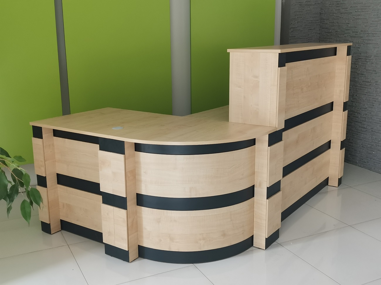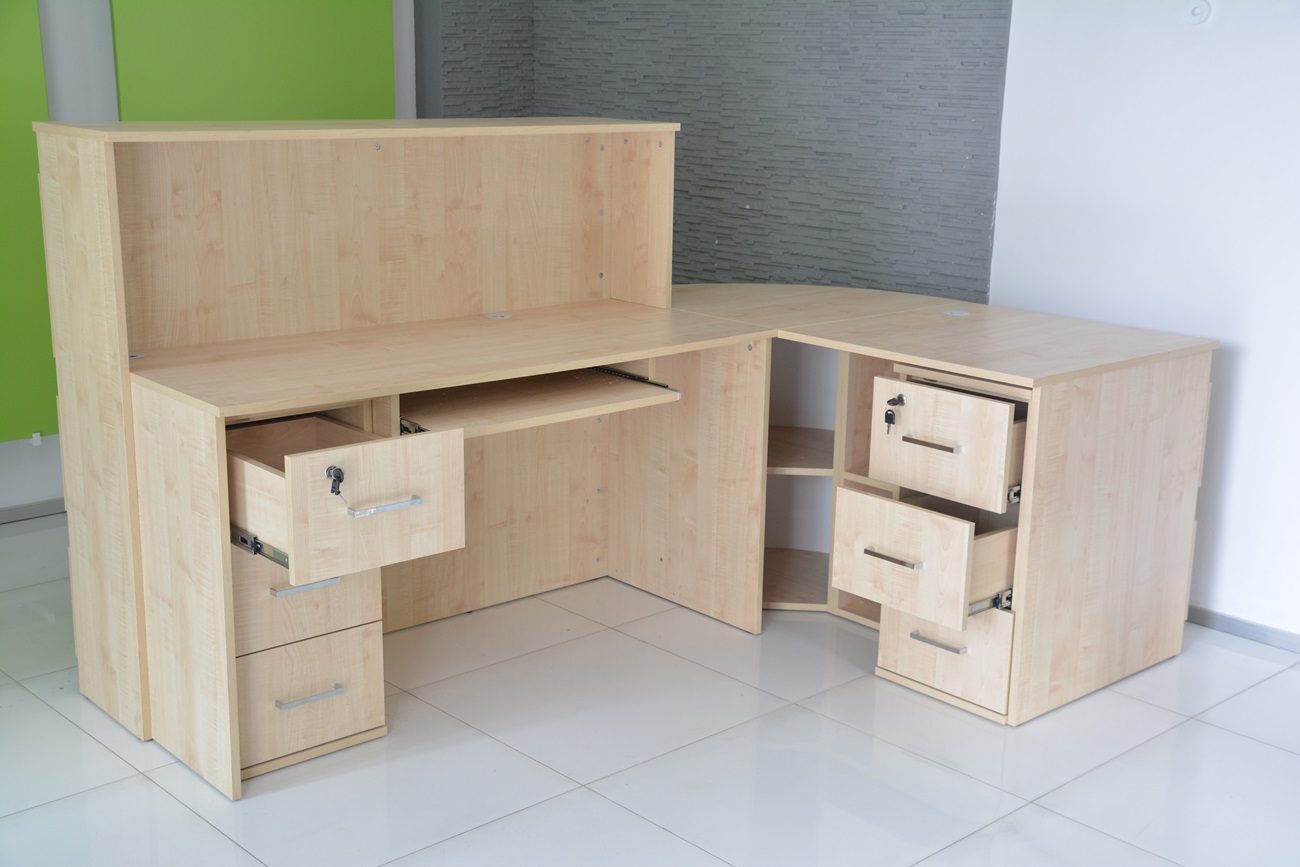 2. Praktyczność: Ergonomiczna konstrukcja ułatwia pracę recepcjonisty, umożliwiając wygodną obsługę klientów, przechowywanie dokumentów i obsługę sprzętu biurowego.
