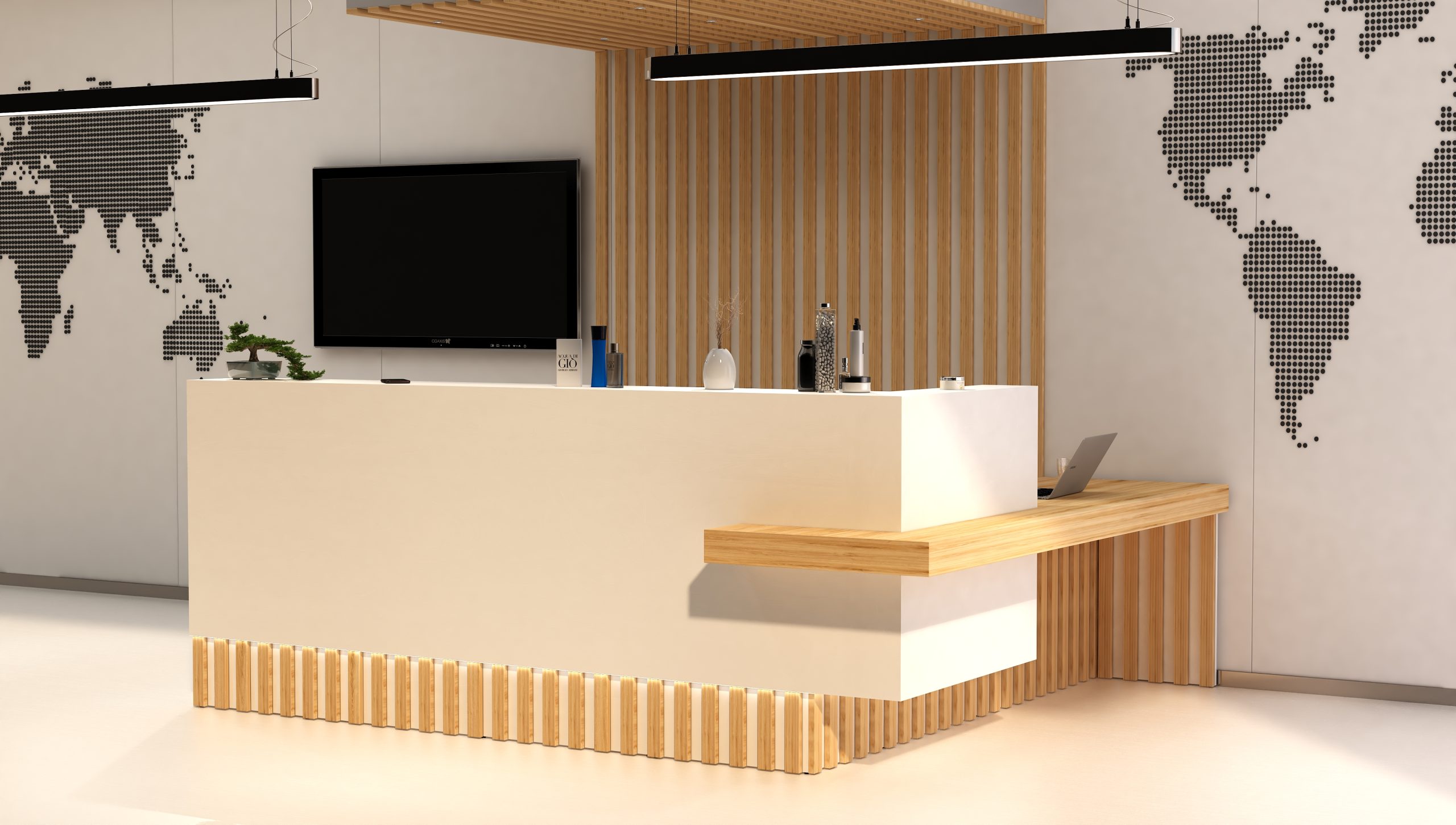 - Klasyczne lady biurowe: Proste i funkcjonalne, idealne do biur i urzędów.