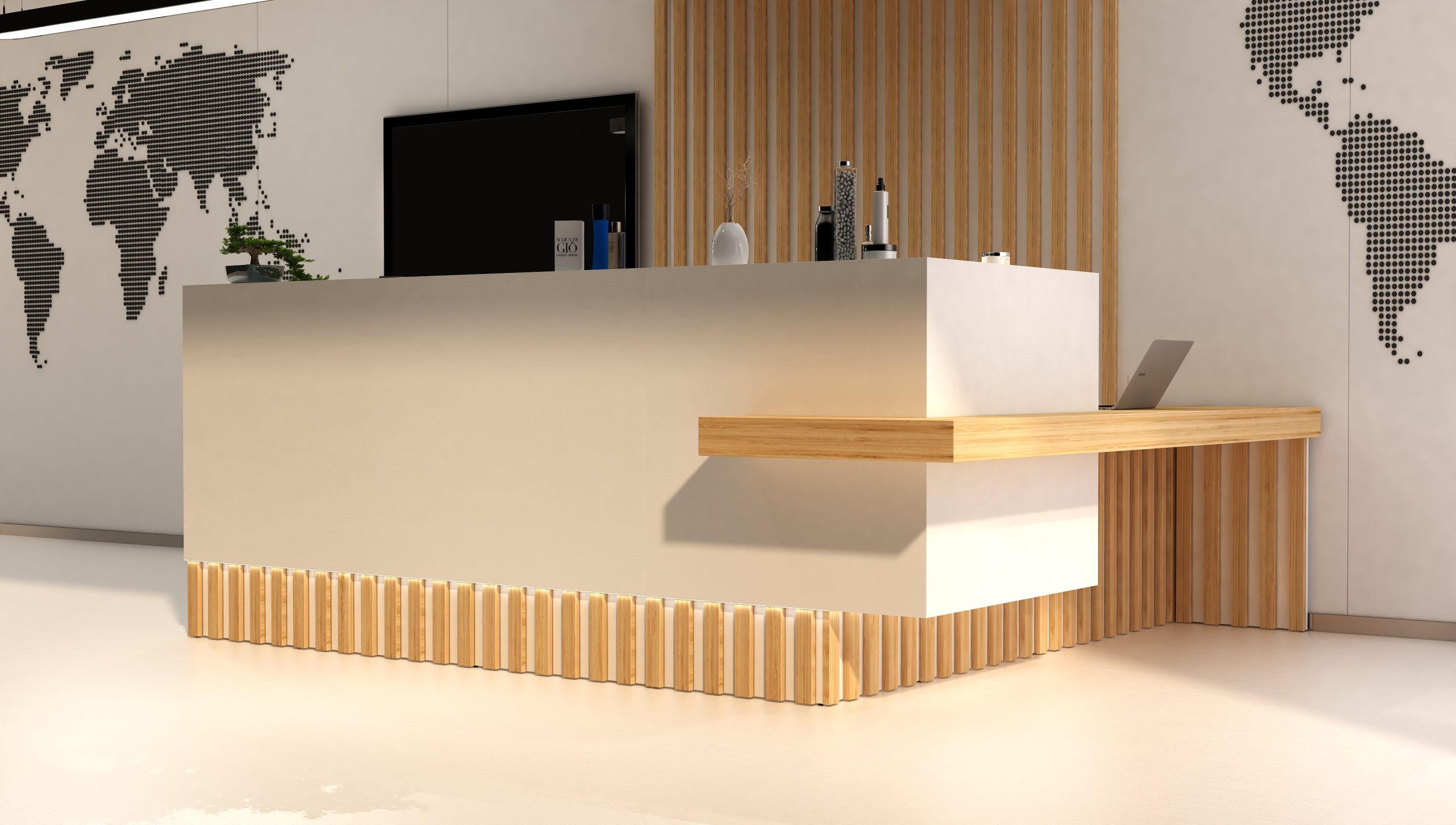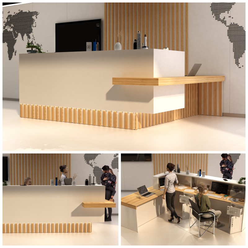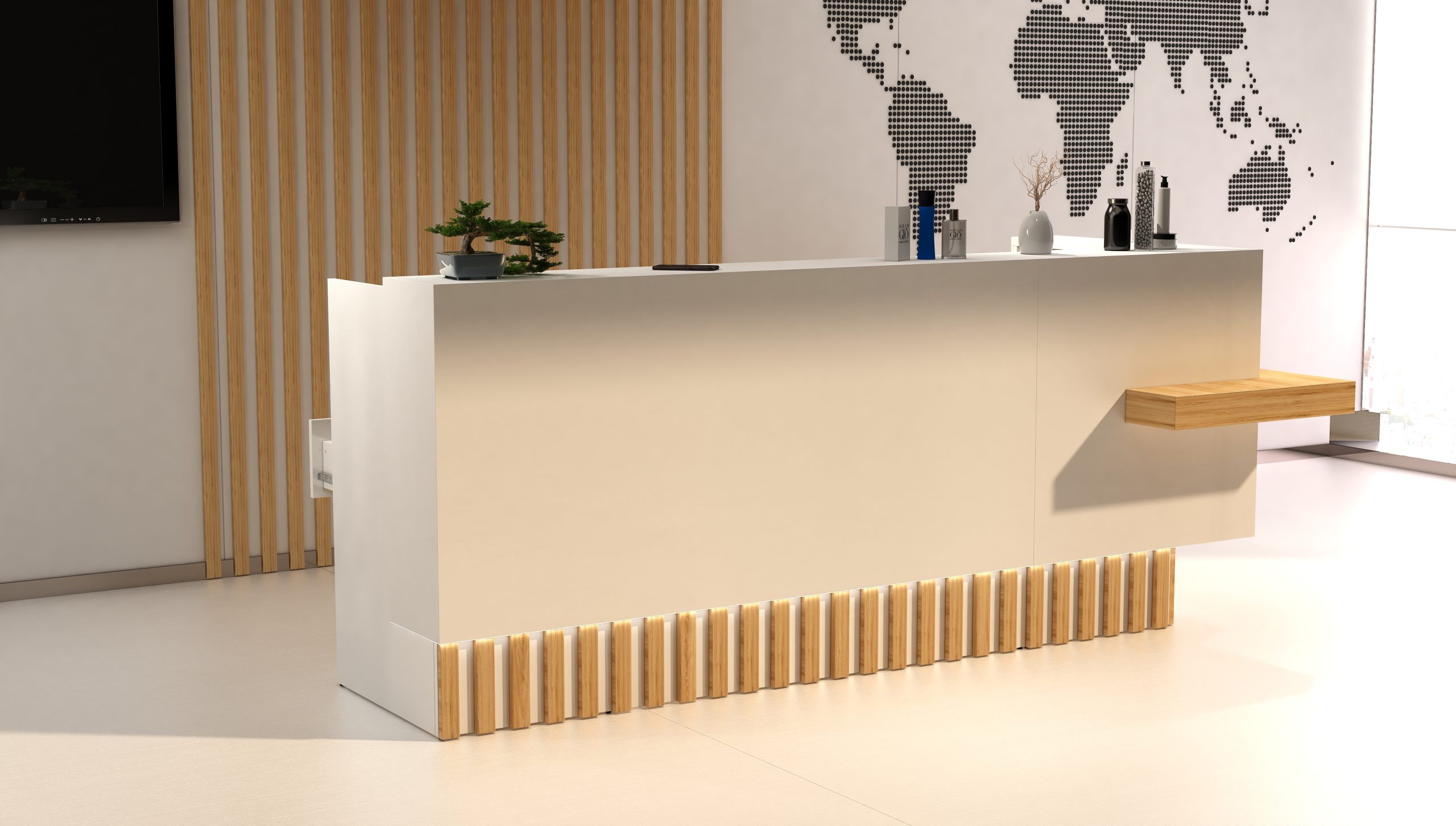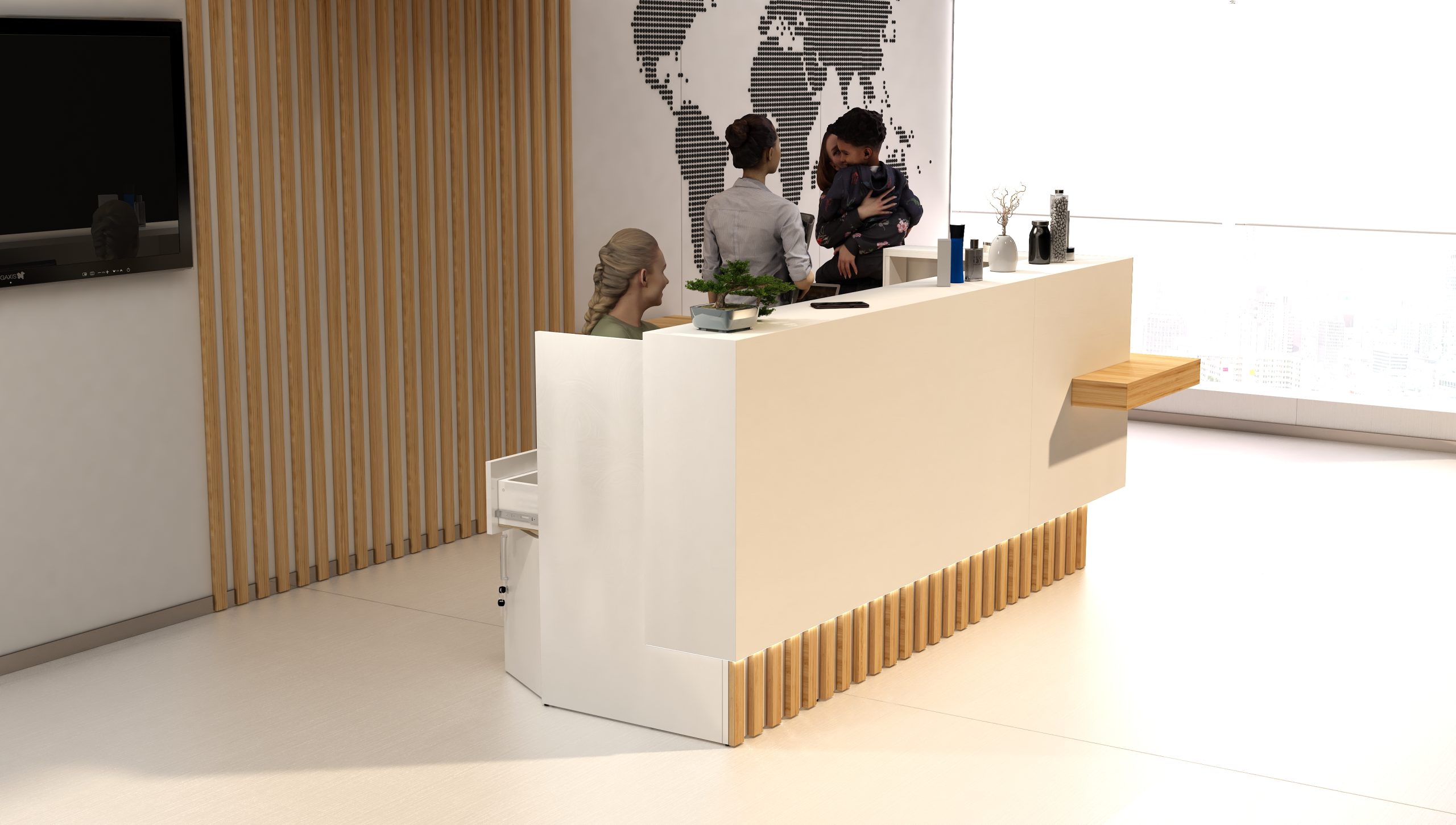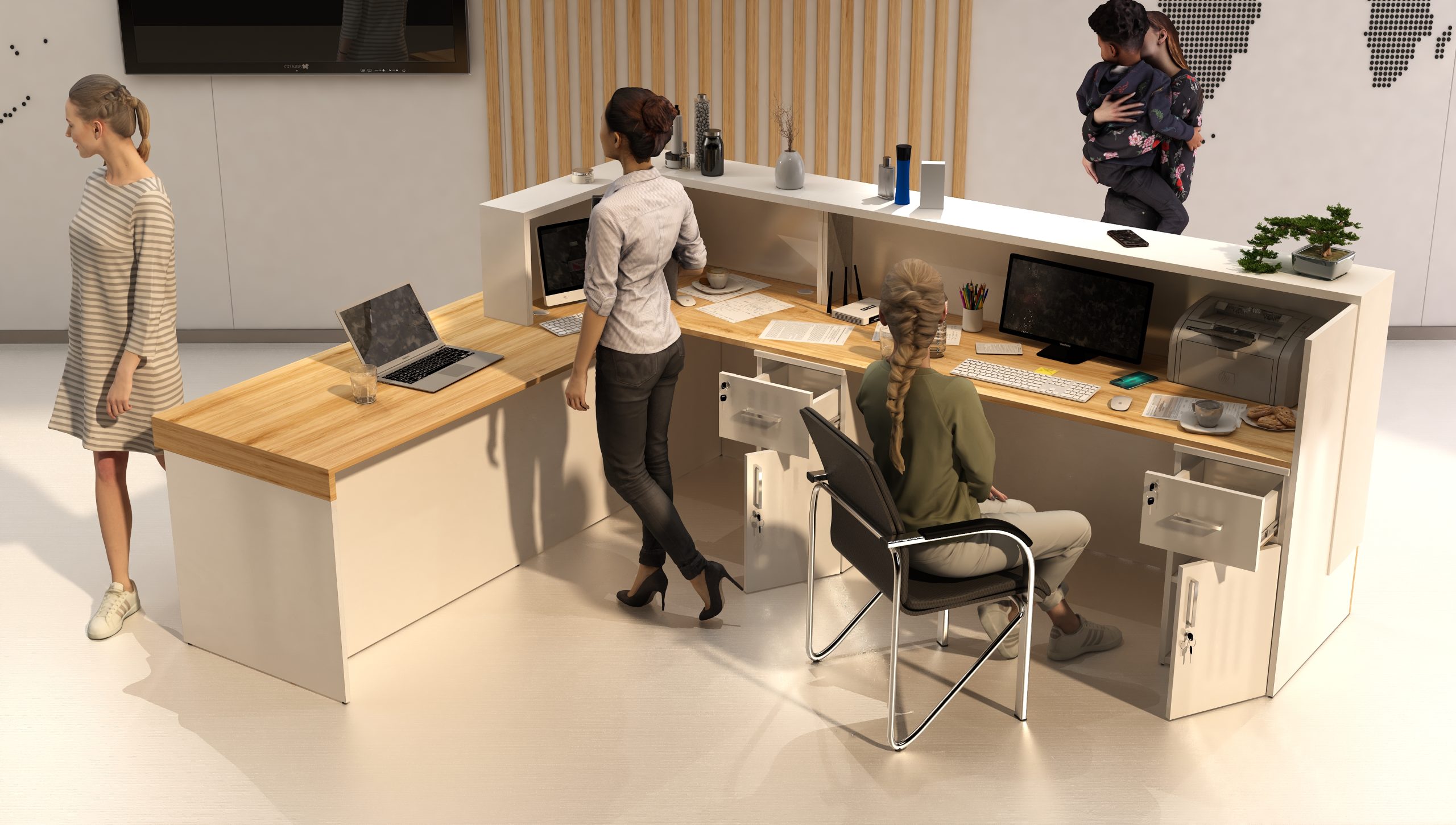 - Praktyczność: Ergonomiczna konstrukcja ułatwia pracę recepcjonisty, umożliwiając wygodną obsługę klientów, przechowywanie dokumentów i obsługę sprzętu biurowego.