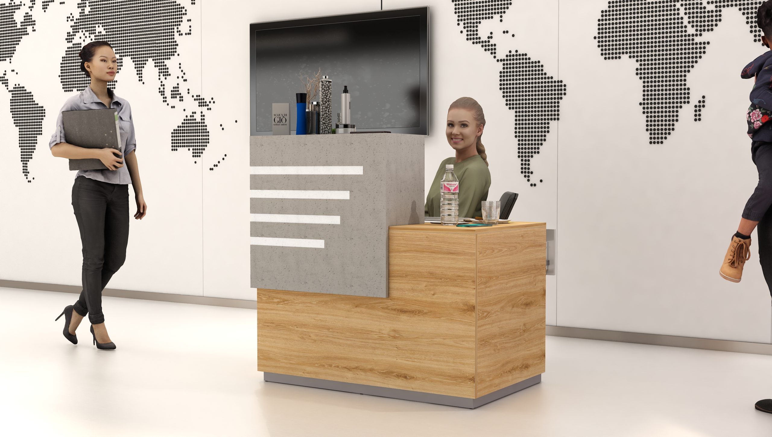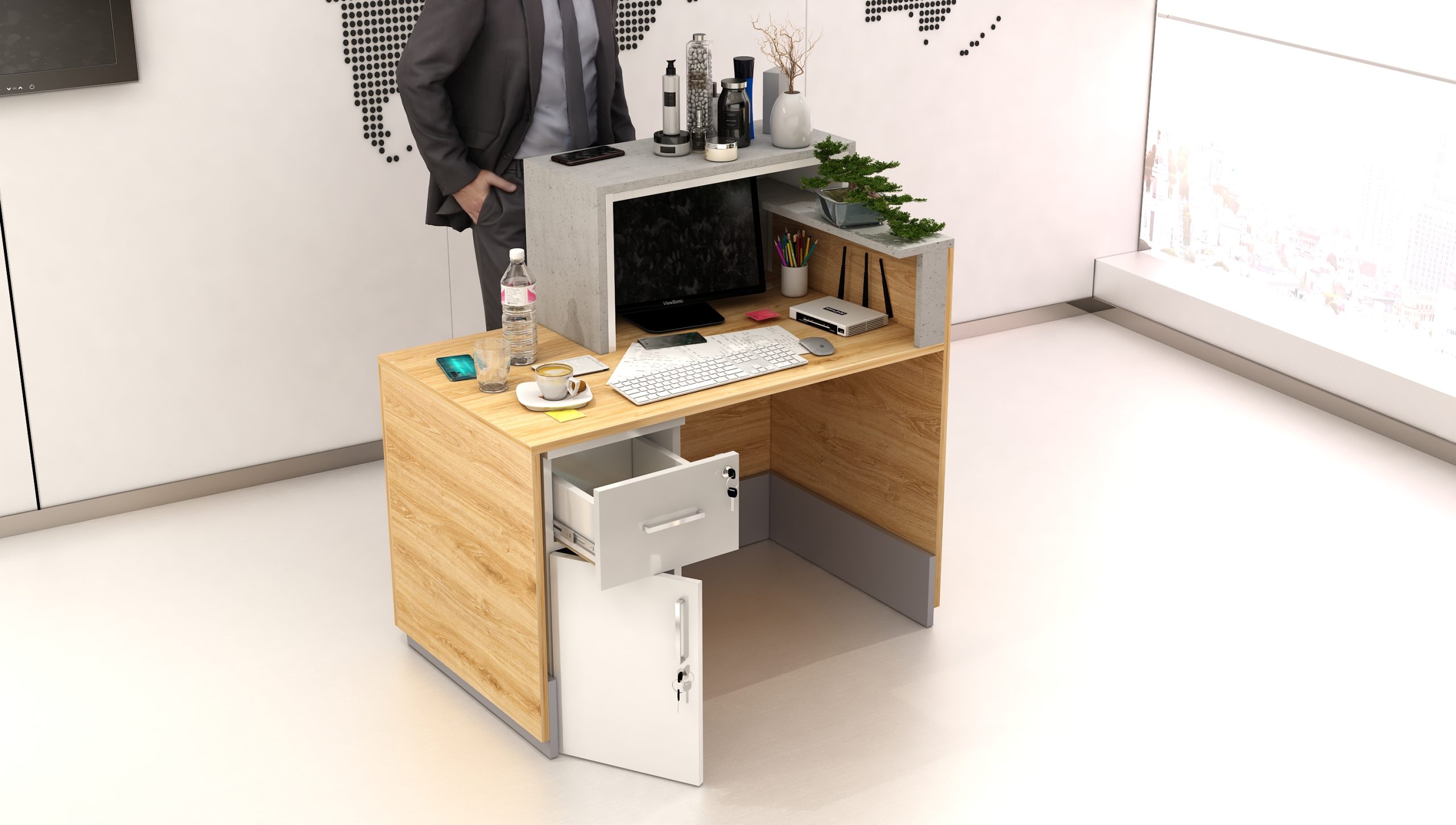 - Praktyczność: Ergonomiczna konstrukcja ułatwia pracę recepcjonisty, umożliwiając wygodną obsługę klientów, przechowywanie dokumentów i obsługę sprzętu biurowego.