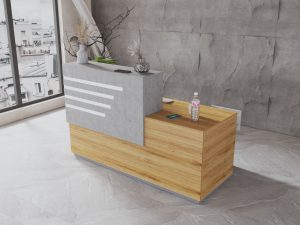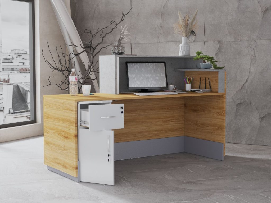 - Praktyczność: Ergonomiczna konstrukcja ułatwia pracę recepcjonisty, umożliwiając wygodną obsługę klientów, przechowywanie dokumentów i obsługę sprzętu biurowego.