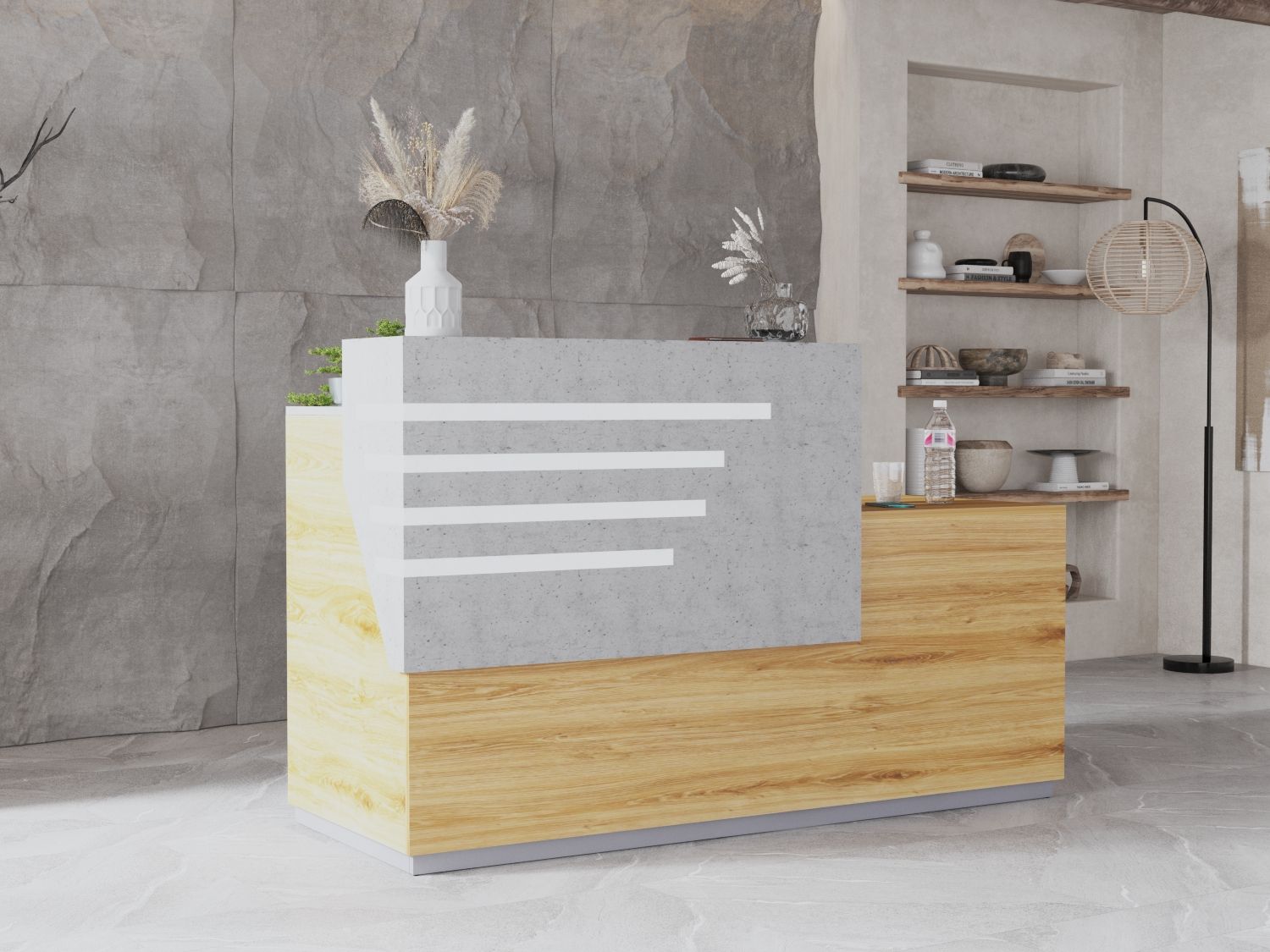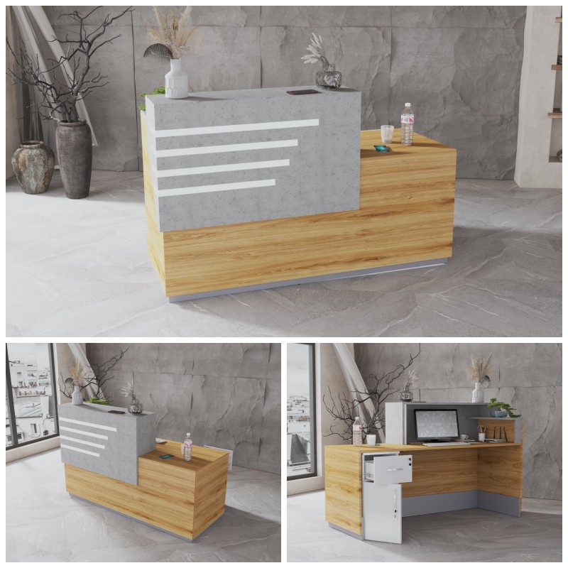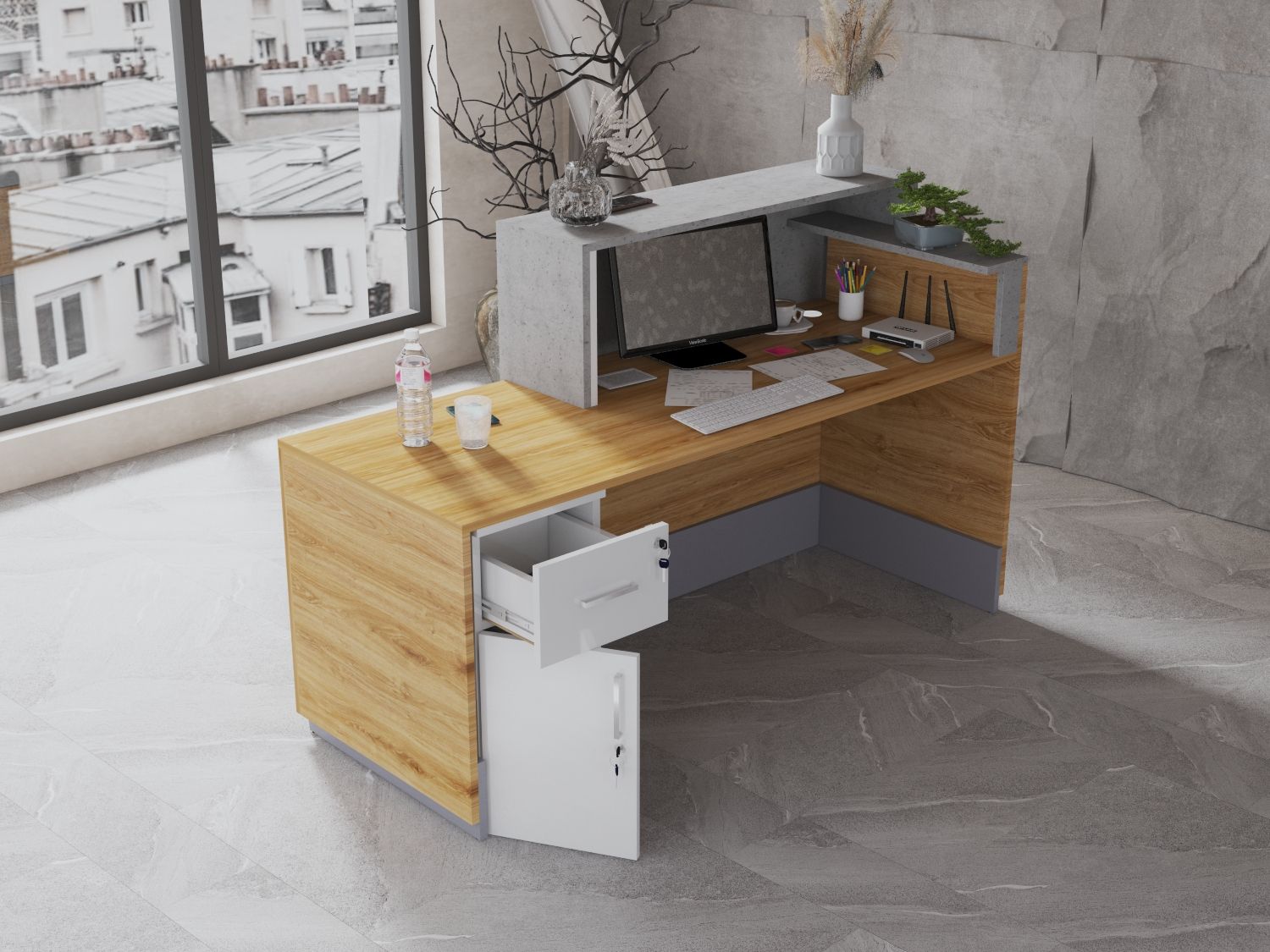 - Praktyczność: Ergonomiczna konstrukcja ułatwia pracę recepcjonisty, umożliwiając wygodną obsługę klientów, przechowywanie dokumentów i obsługę sprzętu biurowego.