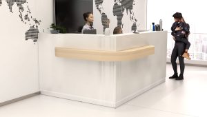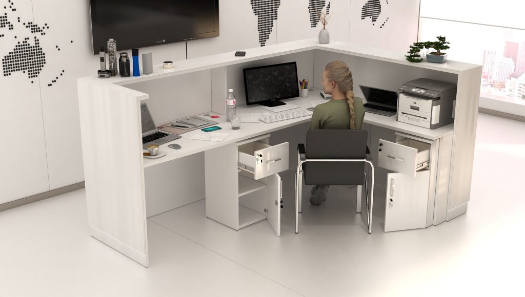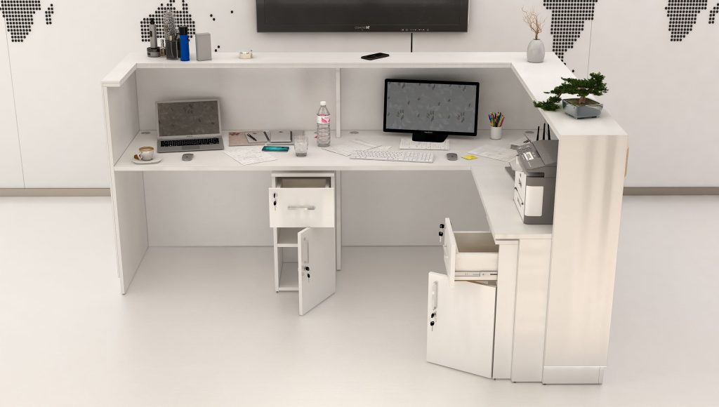 - Praktyczność: Ergonomiczna konstrukcja ułatwia pracę recepcjonisty, umożliwiając wygodną obsługę klientów, przechowywanie dokumentów i obsługę sprzętu biurowego.