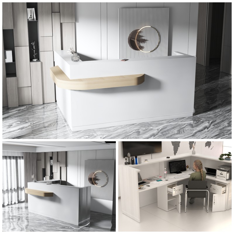 - Praktyczność: Ergonomiczna konstrukcja ułatwia pracę recepcjonisty, umożliwiając wygodną obsługę klientów, przechowywanie dokumentów i obsługę sprzętu biurowego.