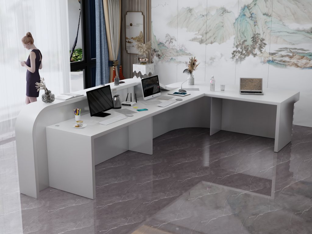 - Praktyczność: Ergonomiczna konstrukcja ułatwia pracę recepcjonisty, umożliwiając wygodną obsługę klientów, przechowywanie dokumentów i obsługę sprzętu biurowego.