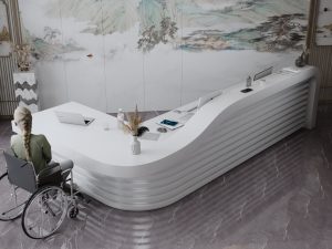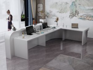 - Klasyczne lady biurowe: Proste i funkcjonalne, idealne do biur i urzędów.