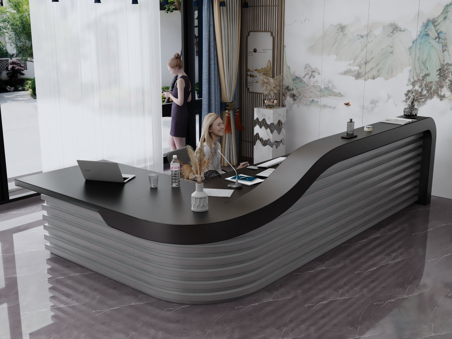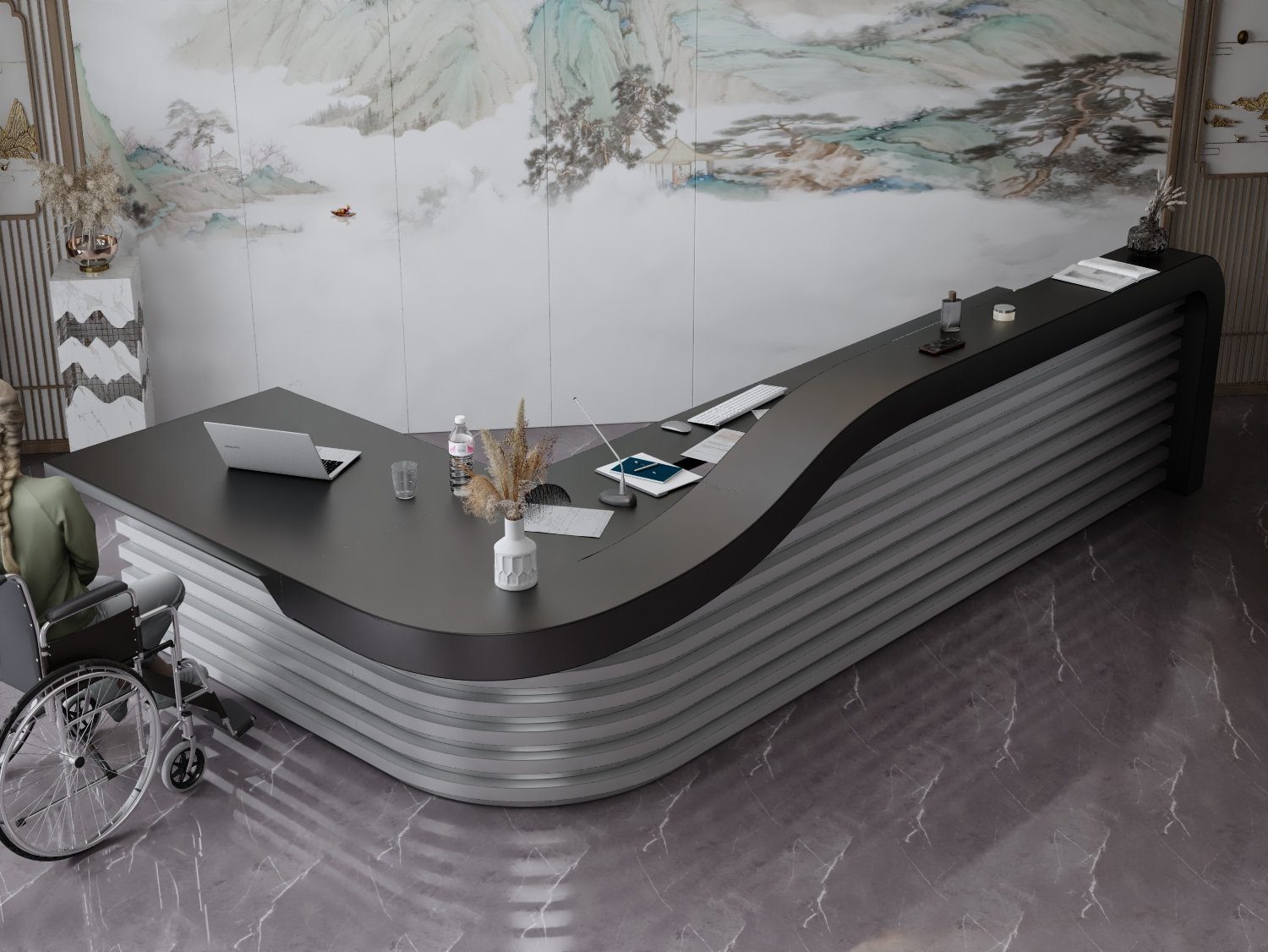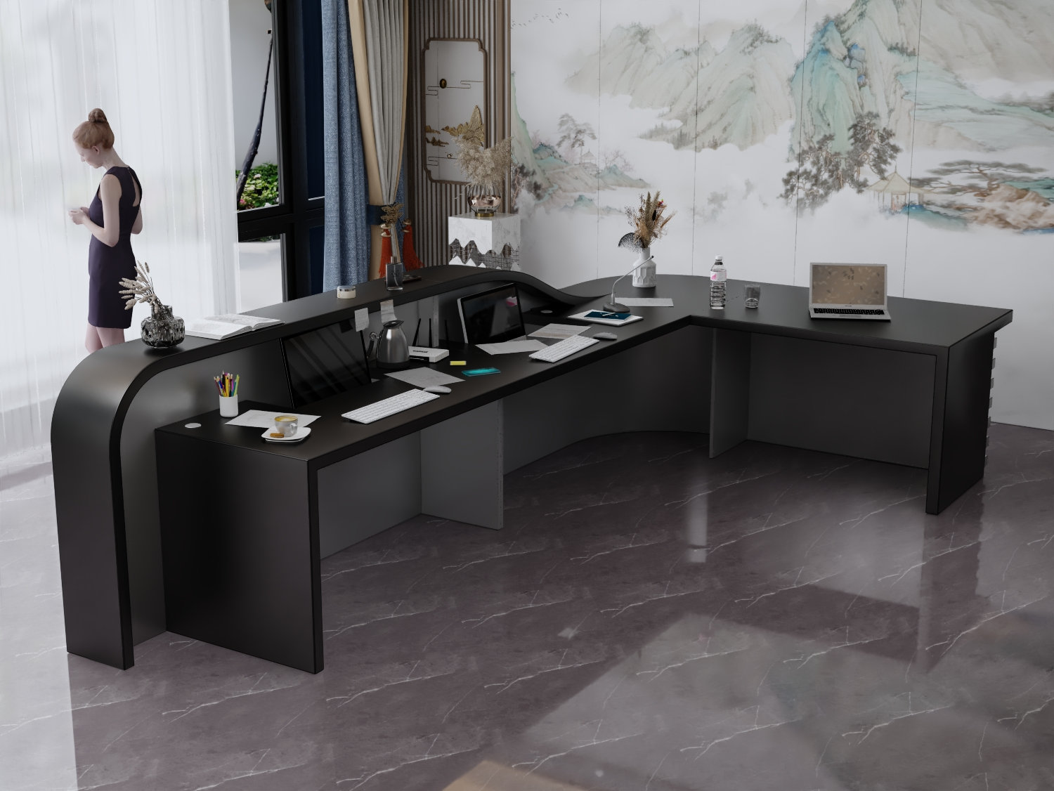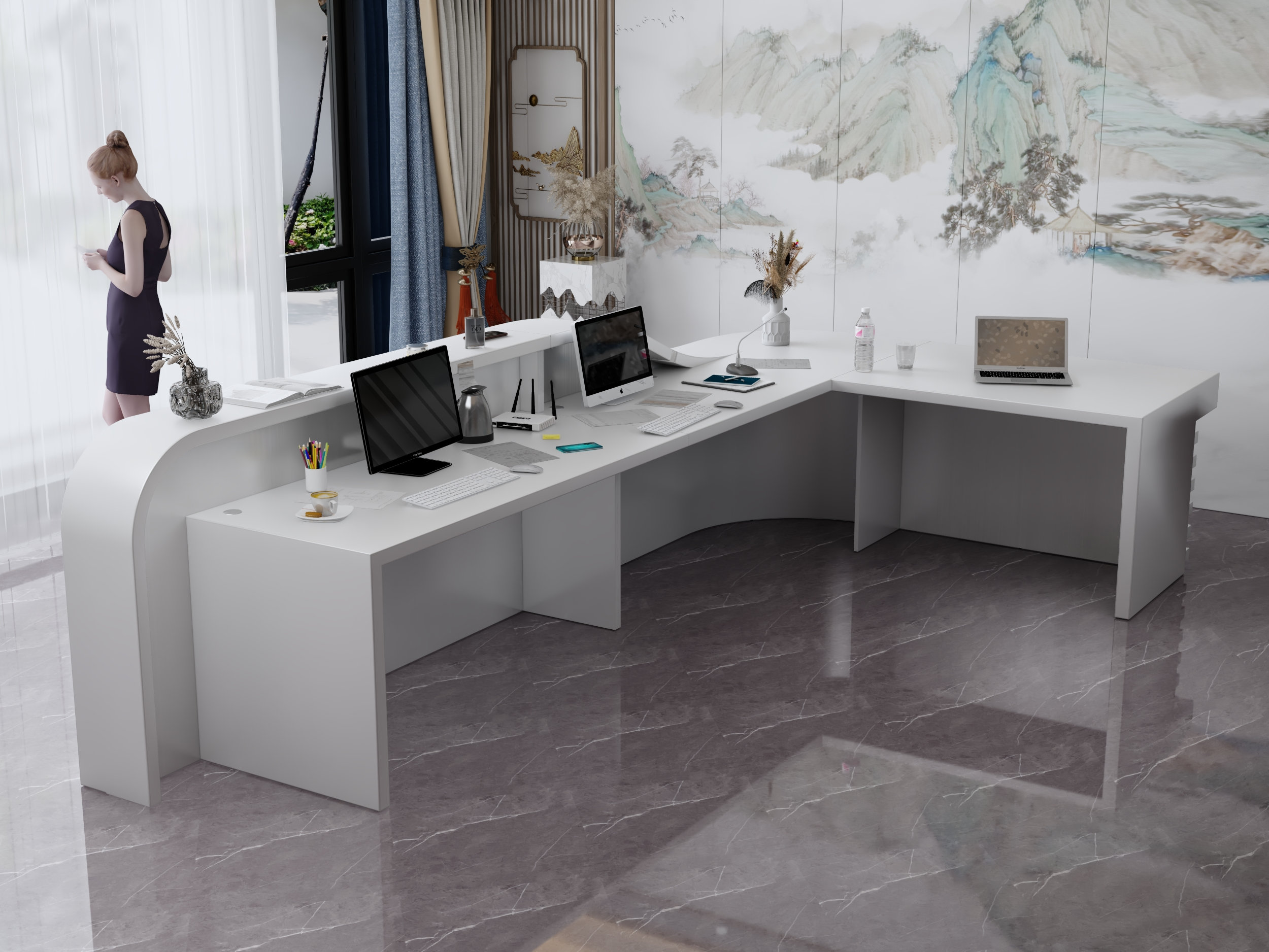 - Praktyczność: Ergonomiczna konstrukcja ułatwia pracę recepcjonisty, umożliwiając wygodną obsługę klientów, przechowywanie dokumentów i obsługę sprzętu biurowego.
