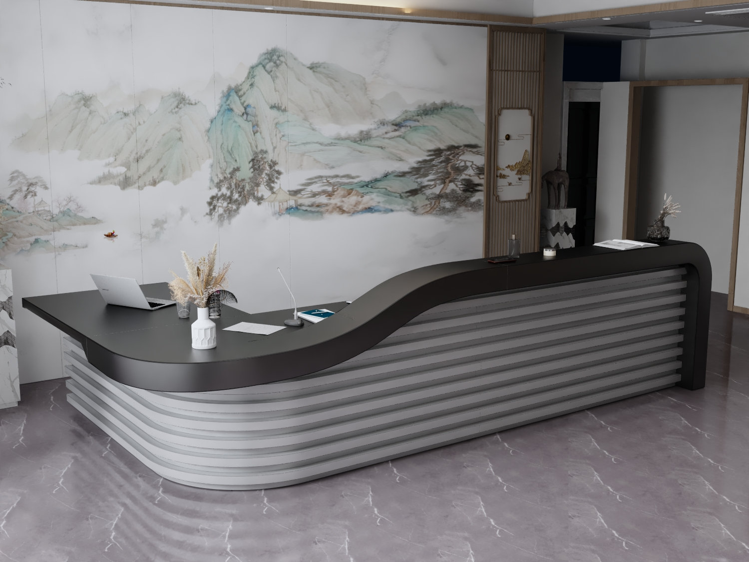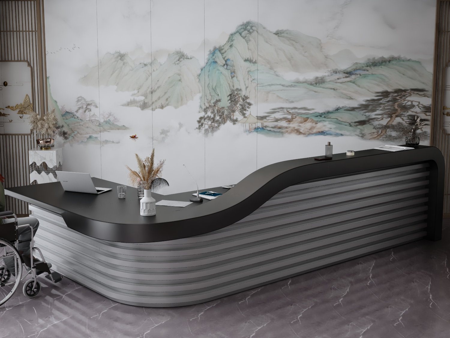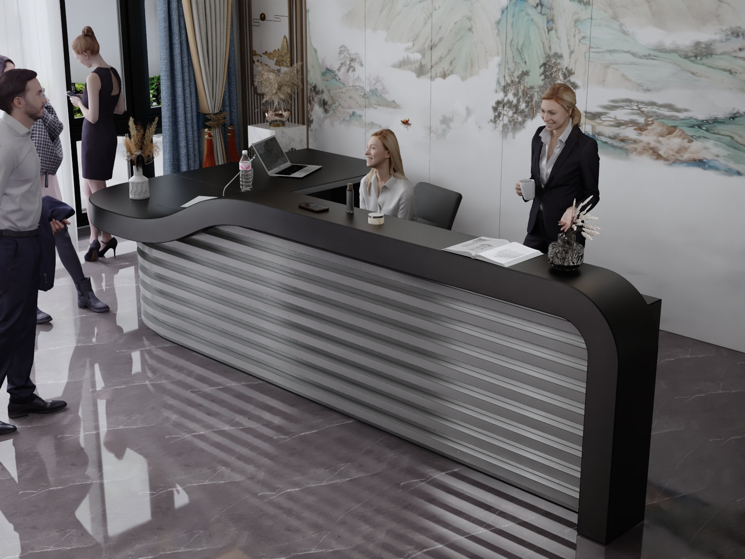 - Praktyczność: Ergonomiczna konstrukcja ułatwia pracę recepcjonisty, umożliwiając wygodną obsługę klientów, przechowywanie dokumentów i obsługę sprzętu biurowego.