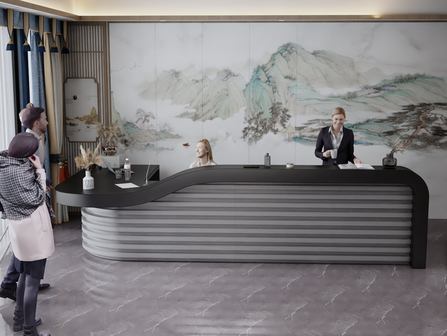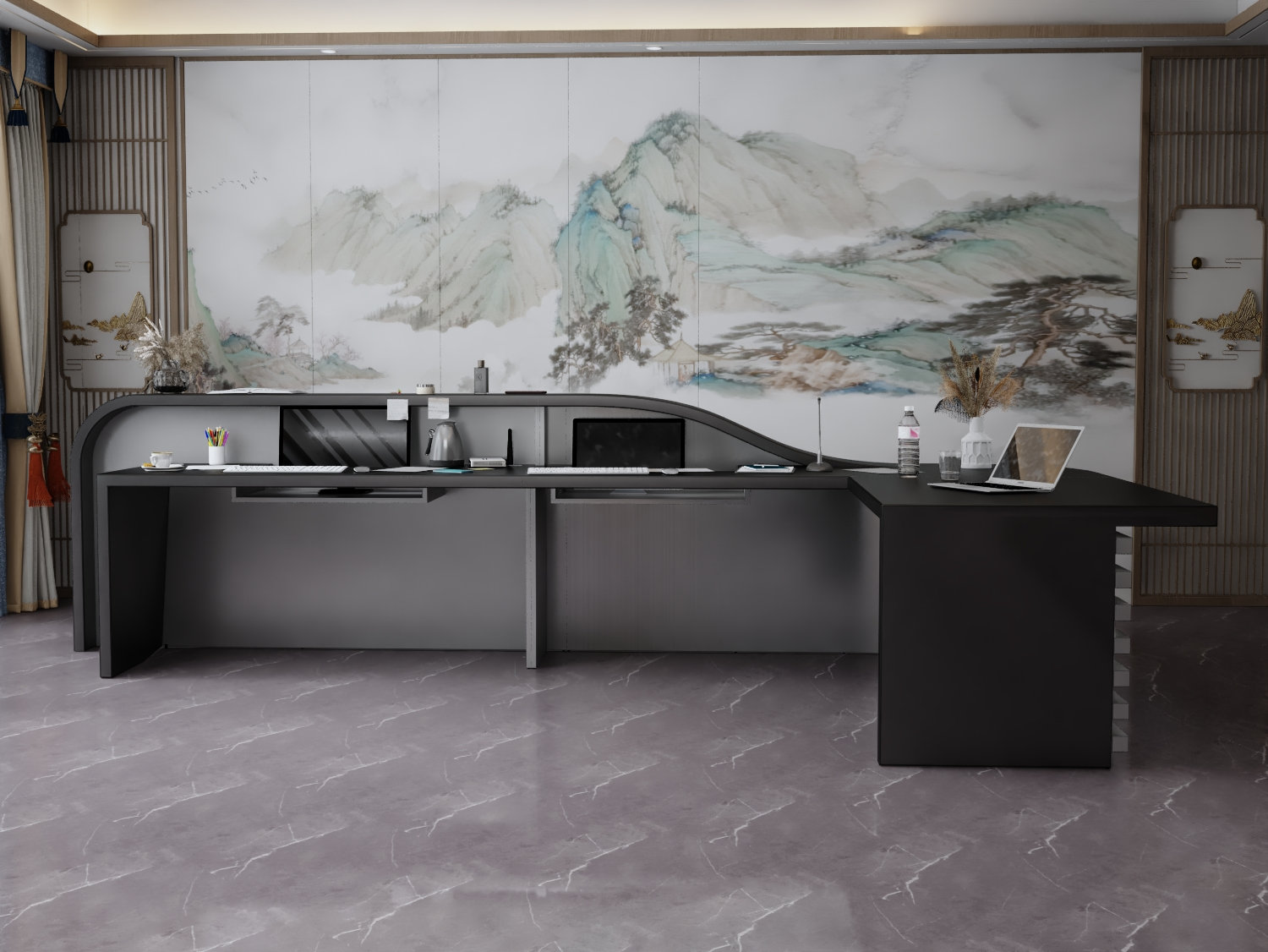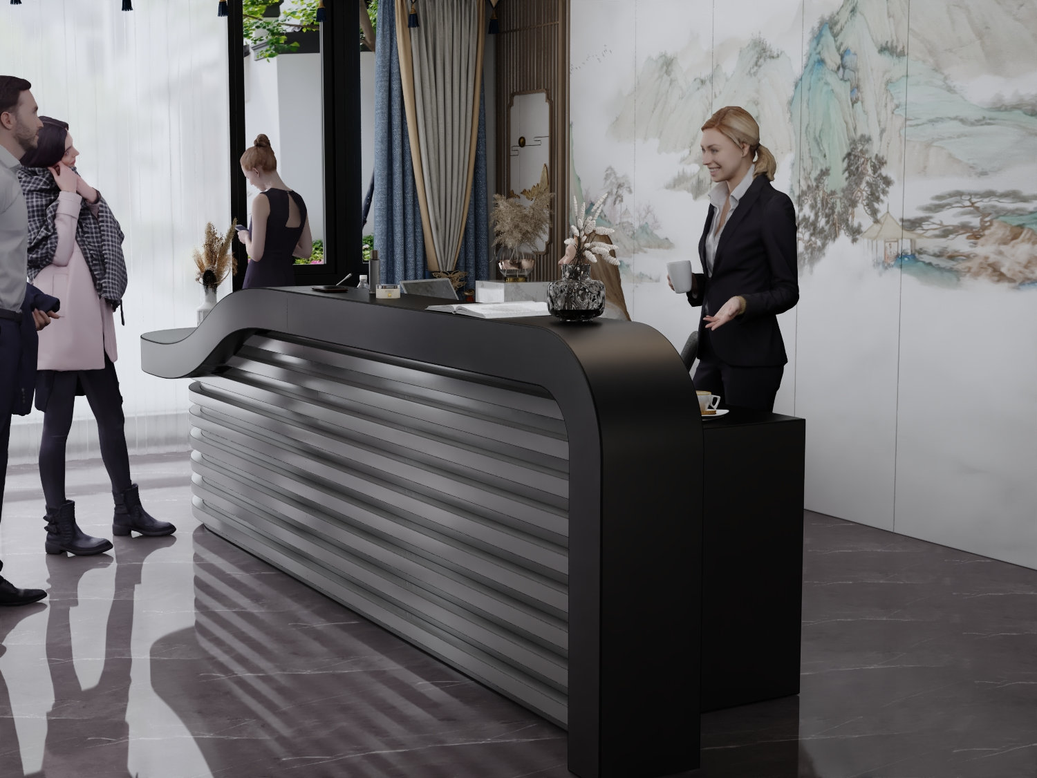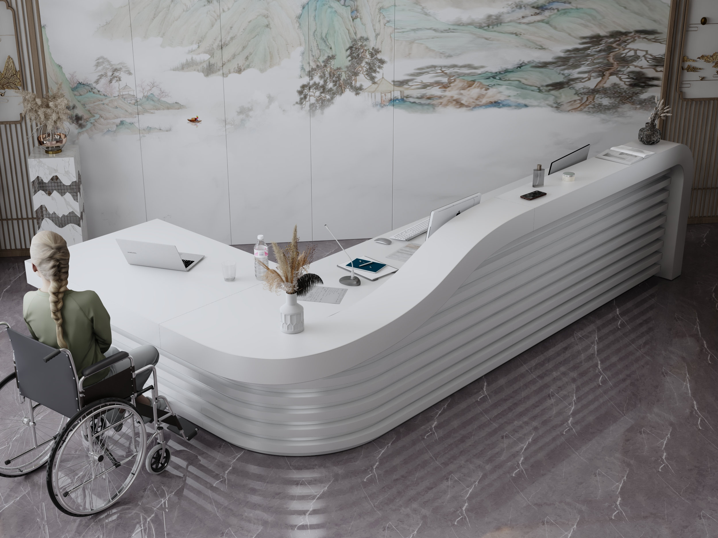 - Praktyczność: Ergonomiczna konstrukcja ułatwia pracę recepcjonisty, umożliwiając wygodną obsługę klientów, przechowywanie dokumentów i obsługę sprzętu biurowego.