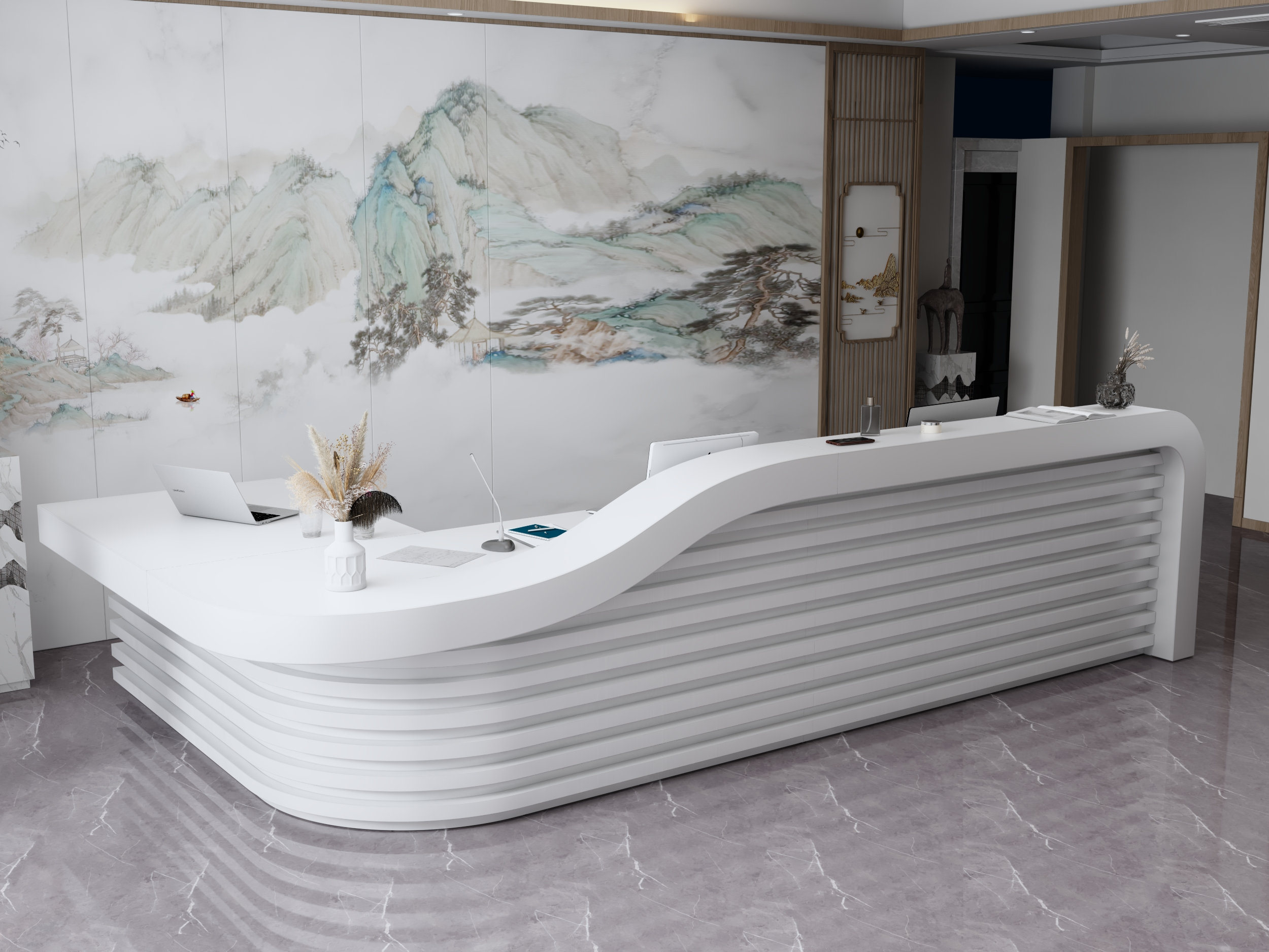 - Klasyczne lady biurowe: Proste i funkcjonalne, idealne do biur i urzędów.